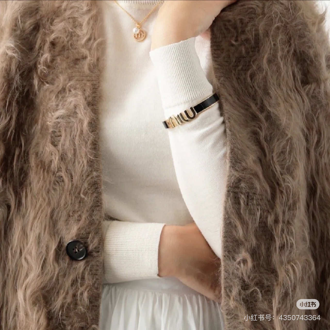 这款首饰是AAAAA 1:1 质量 (非常棒). 使用了和原版一模一样的材料. 商标部分也保持了和缪缪/Miu Miu一样. 图片拍摄是实物首饰拍摄, 您所收到的实物保证和我们图片一模一样.
