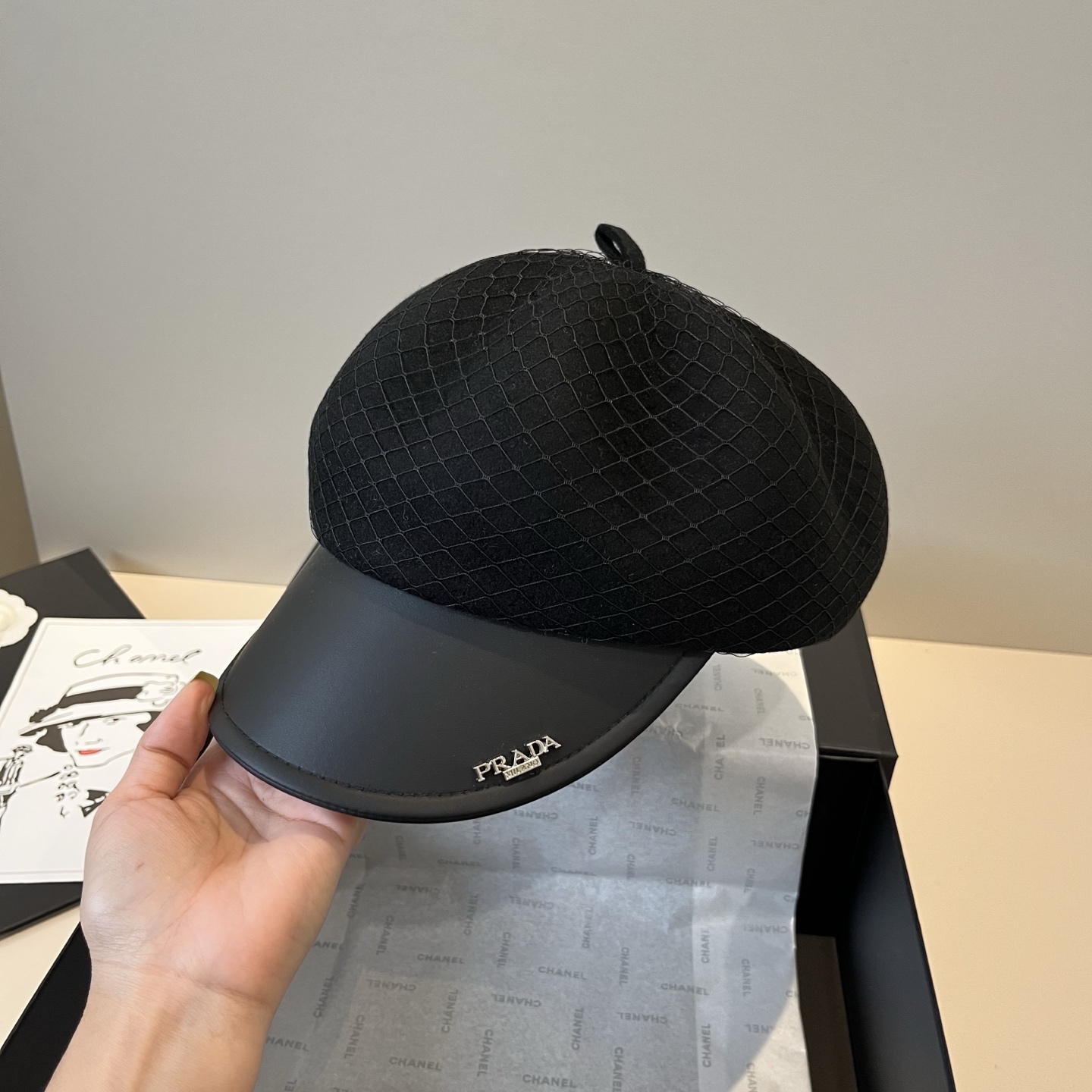 这款帽子是AAAAA 1:1 质量 (非常棒). 使用了和原版一模一样的材料. 商标部分也保持了和普拉达/Prada一样. 图片拍摄是实物帽子拍摄, 您所收到的实物保证和我们图片一模一样.
