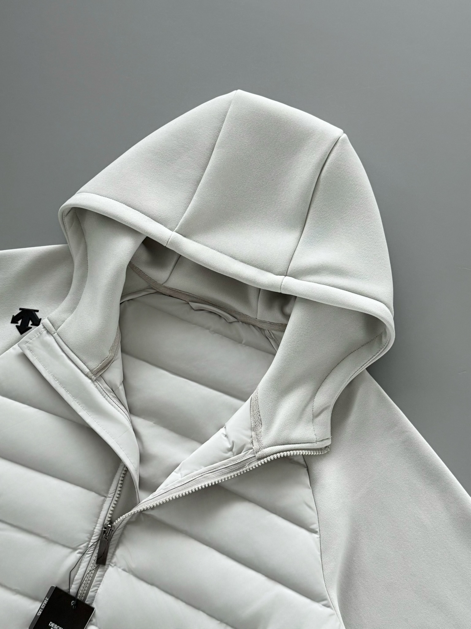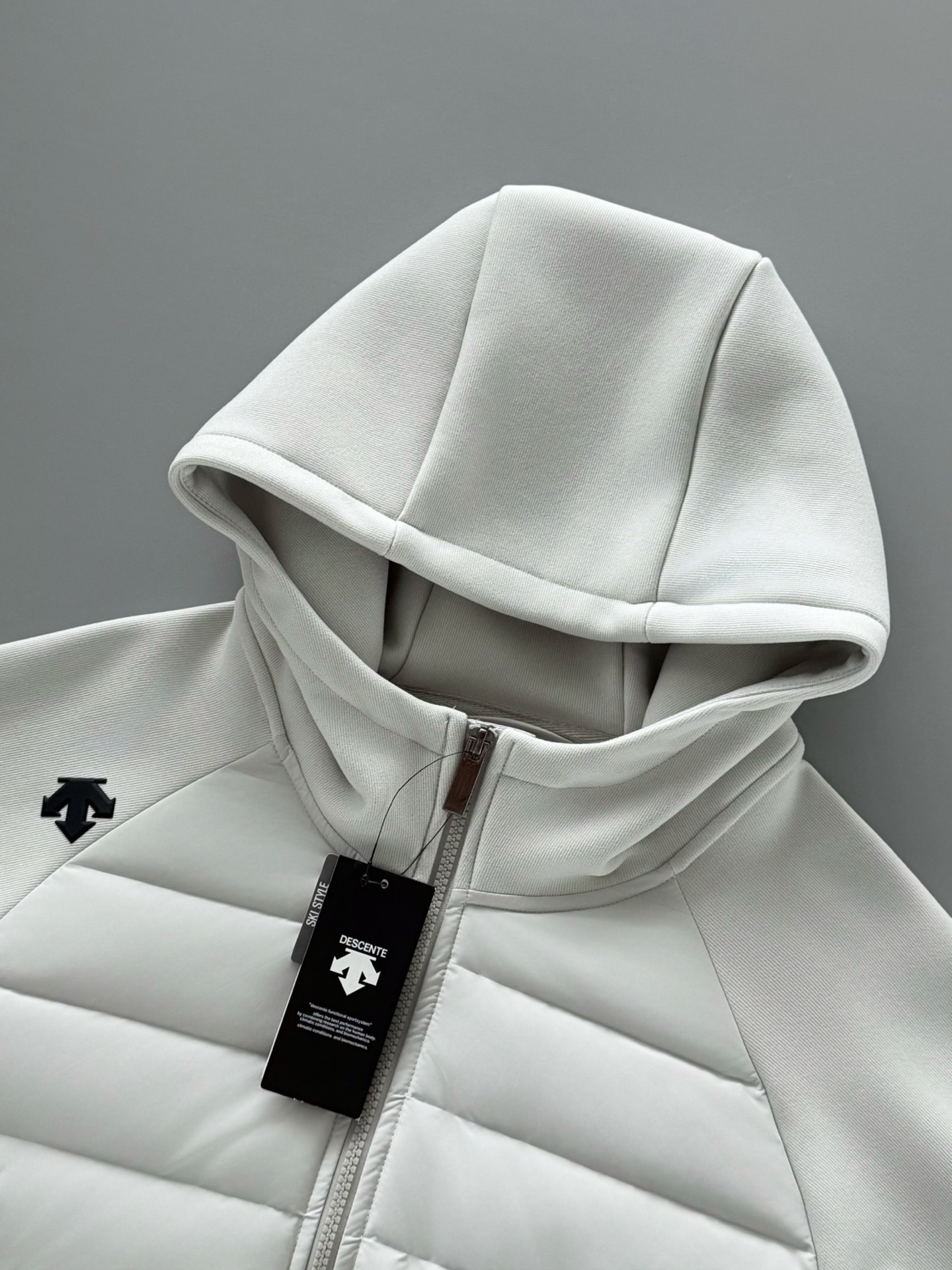 这款衣服是AAAAA 1:1 质量 (非常棒). 使用了和原版一模一样的材料. 商标部分也保持了和Descente一样. 图片拍摄是实物衣服拍摄, 您所收到的实物保证和我们图片一模一样.