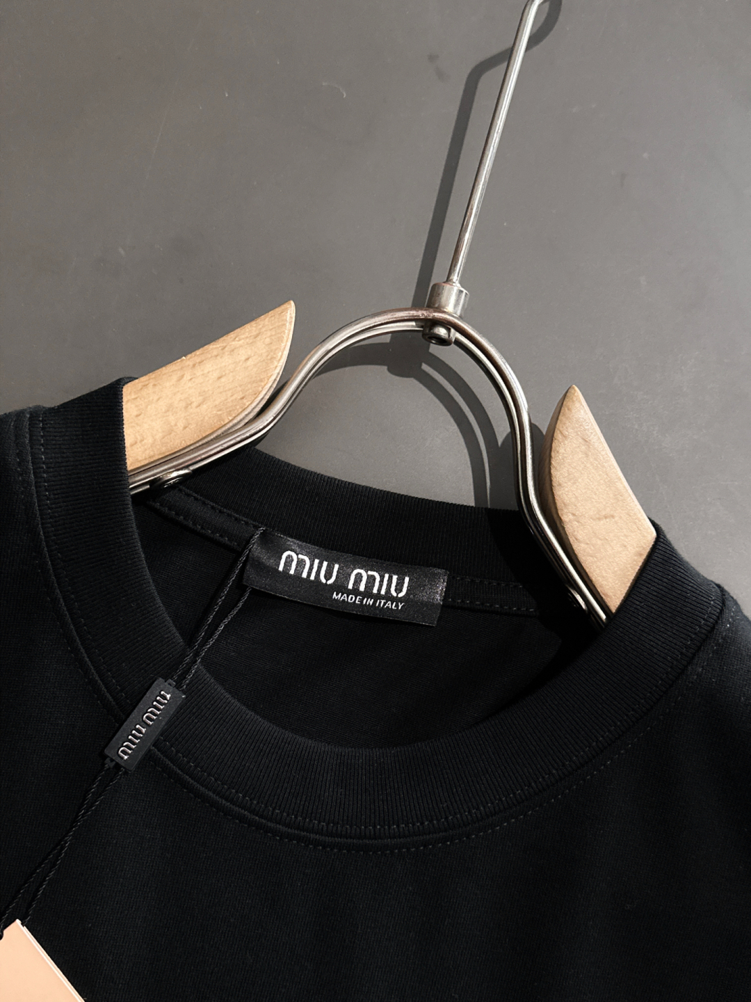 这款衣服是AAAAA 1:1 质量 (非常棒). 使用了和原版一模一样的材料. 商标部分也保持了和缪缪/Miu Miu一样. 图片拍摄是实物衣服拍摄, 您所收到的实物保证和我们图片一模一样.