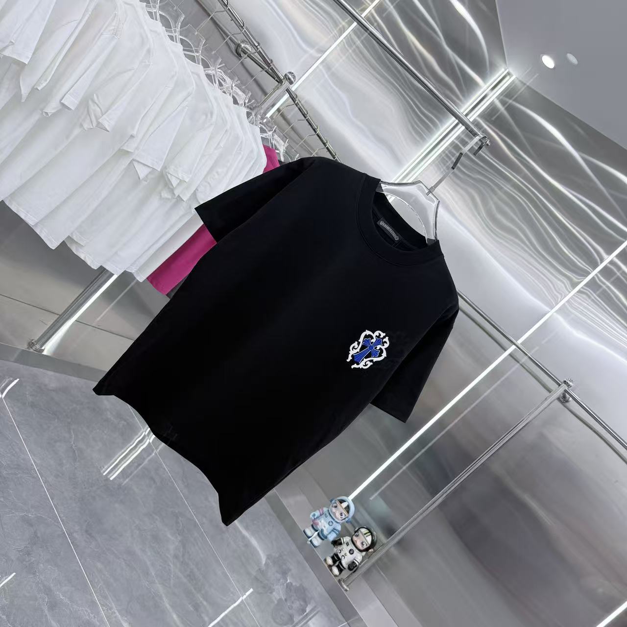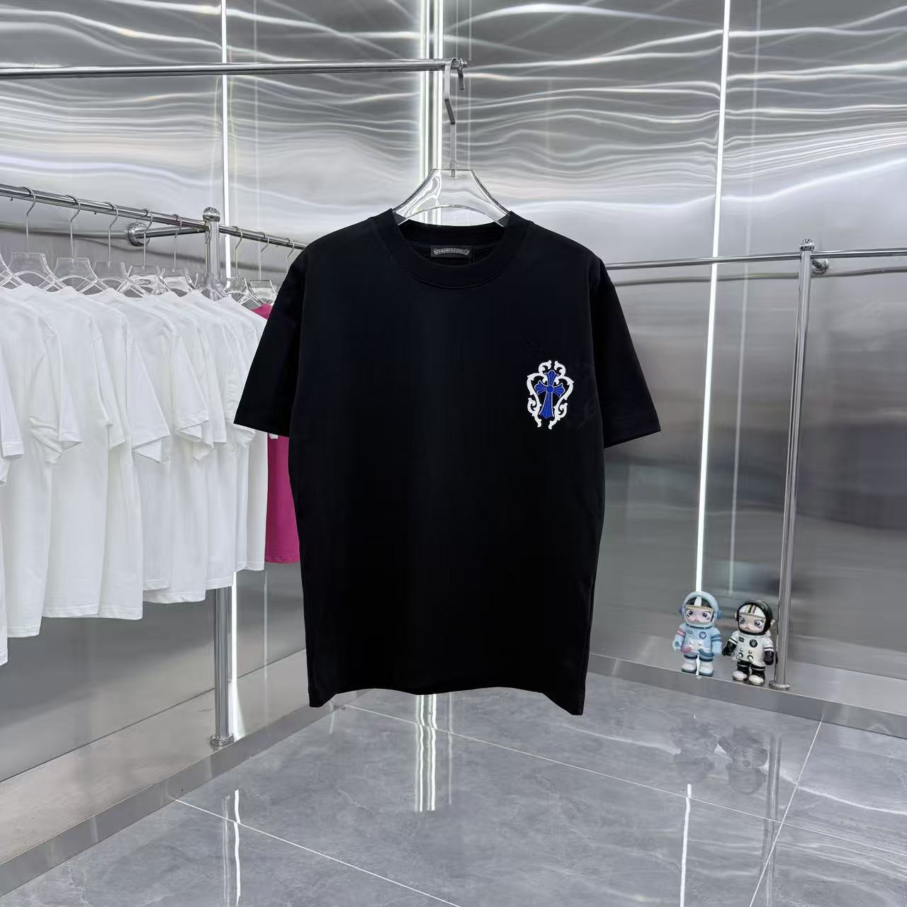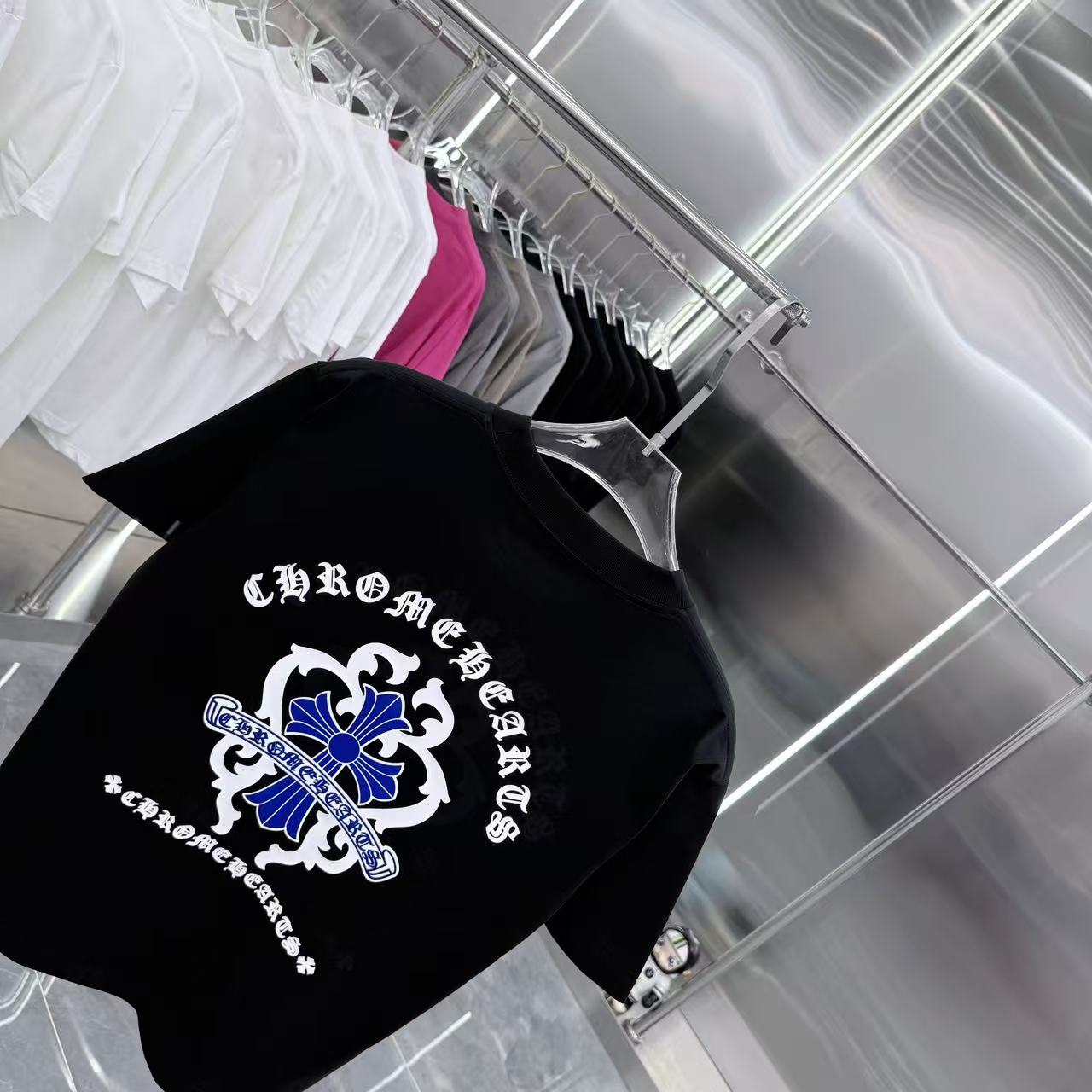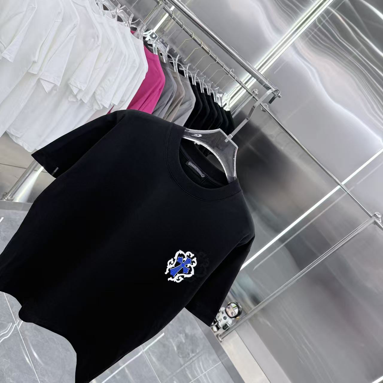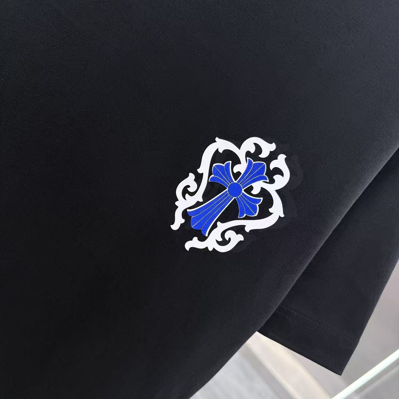 这款衣服是AAAAA 1:1 质量 (非常棒). 使用了和原版一模一样的材料. 商标部分也保持了和克罗心/Chrome Hearts一样. 图片拍摄是实物衣服拍摄, 您所收到的实物保证和我们图片一模一样.