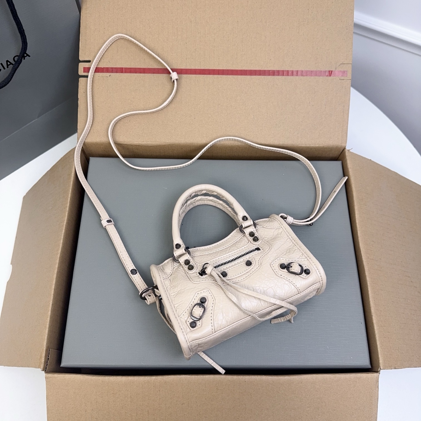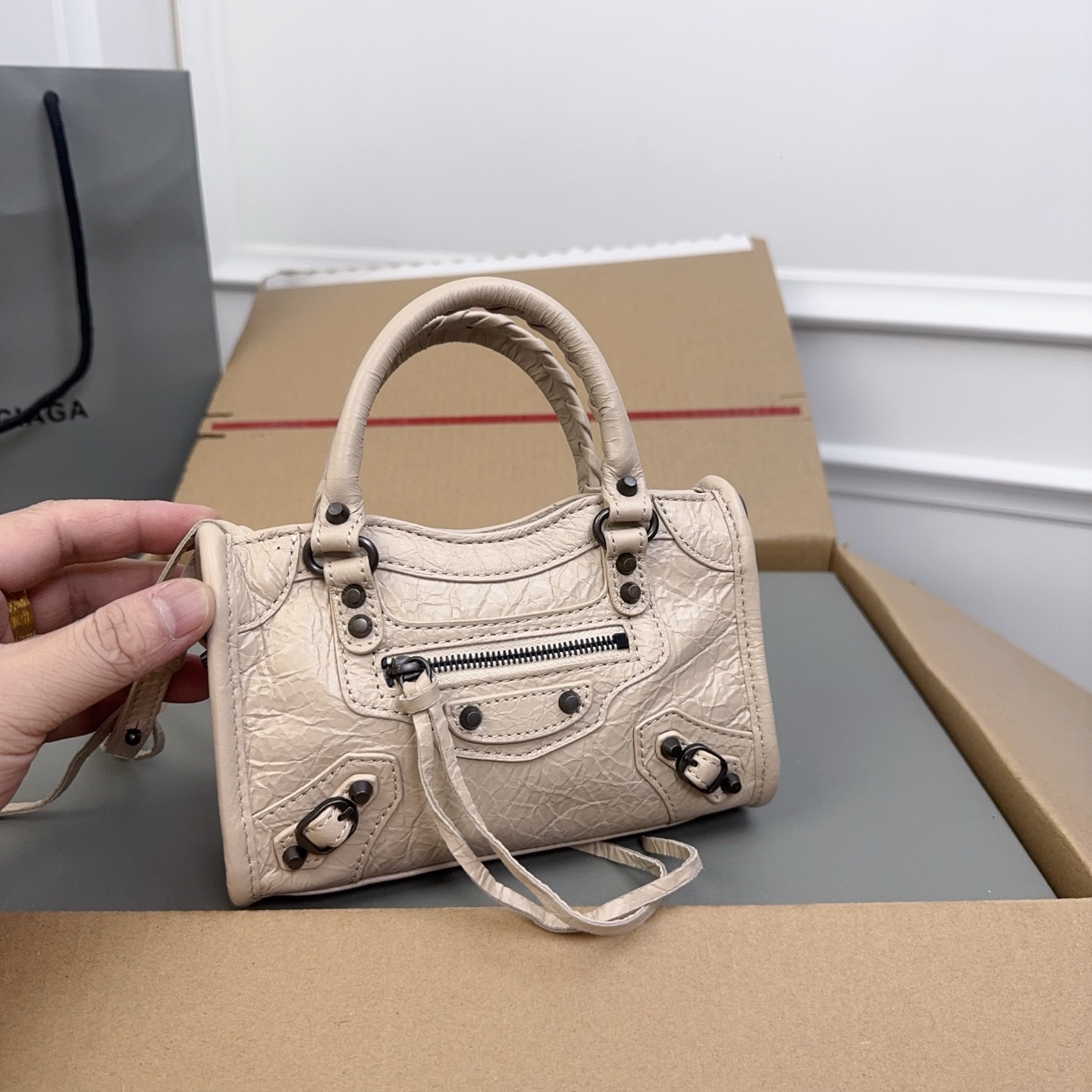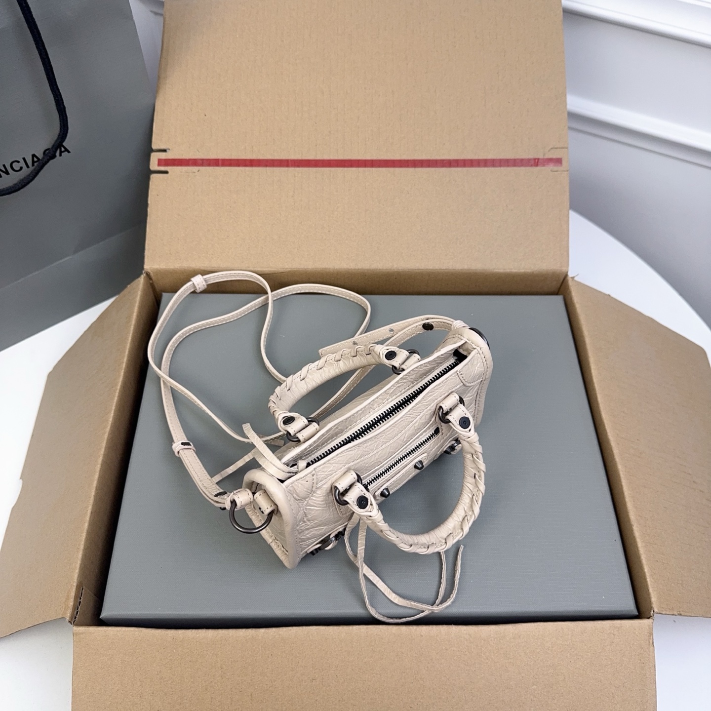 这款包包是AAAAA 1:1 质量 (非常棒). 使用了和原版一模一样的材料. 商标部分也保持了和巴黎世家/Balenciaga一样. 图片拍摄是实物包包拍摄, 您所收到的实物保证和我们图片一模一样.