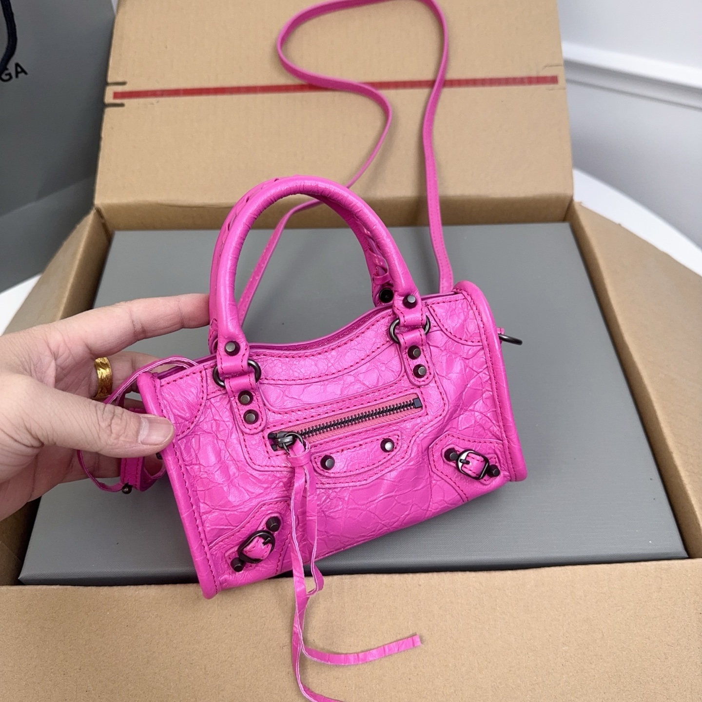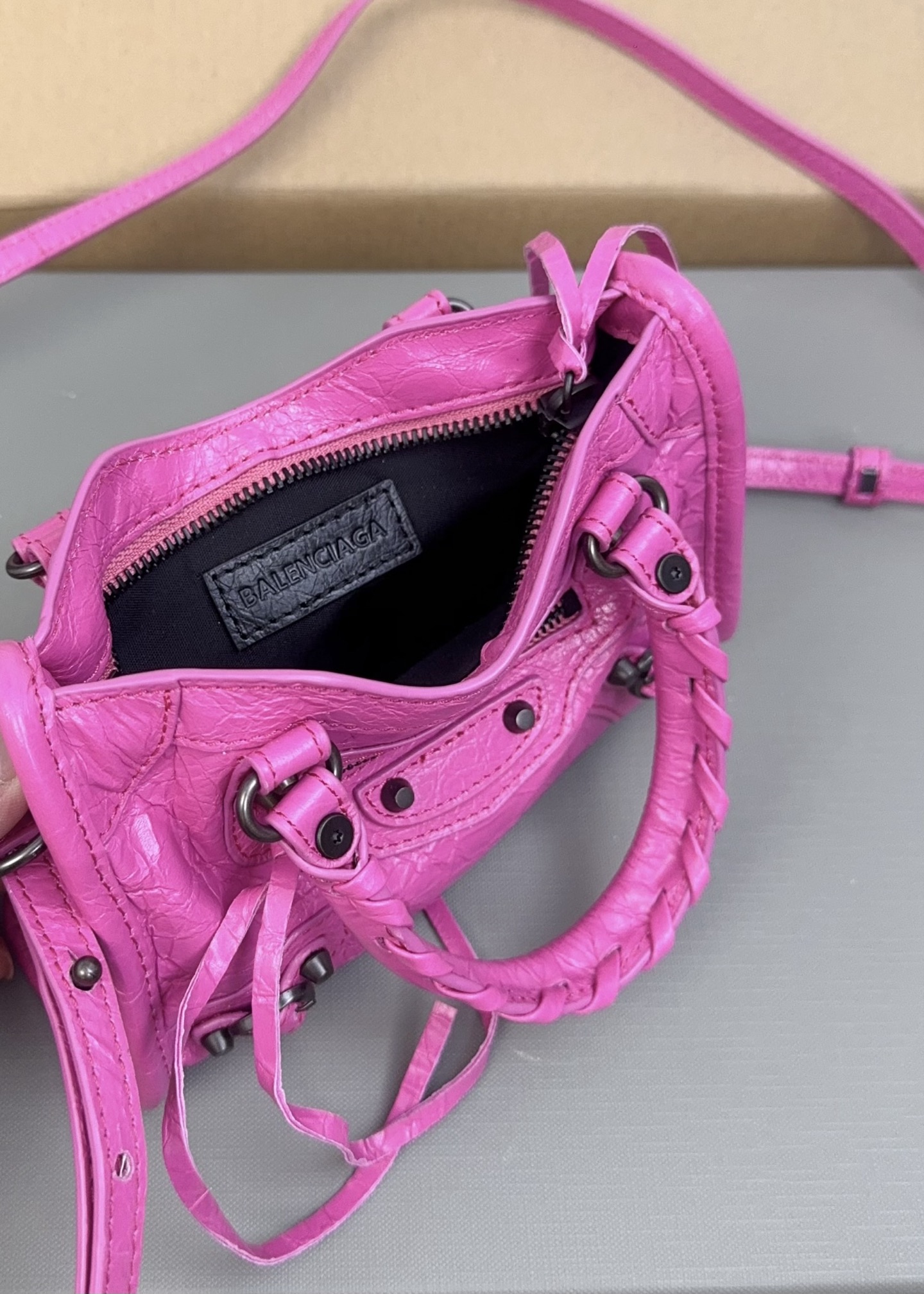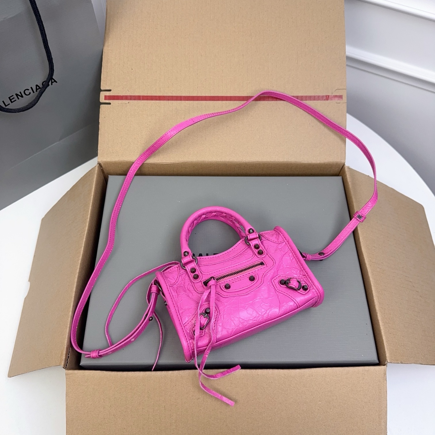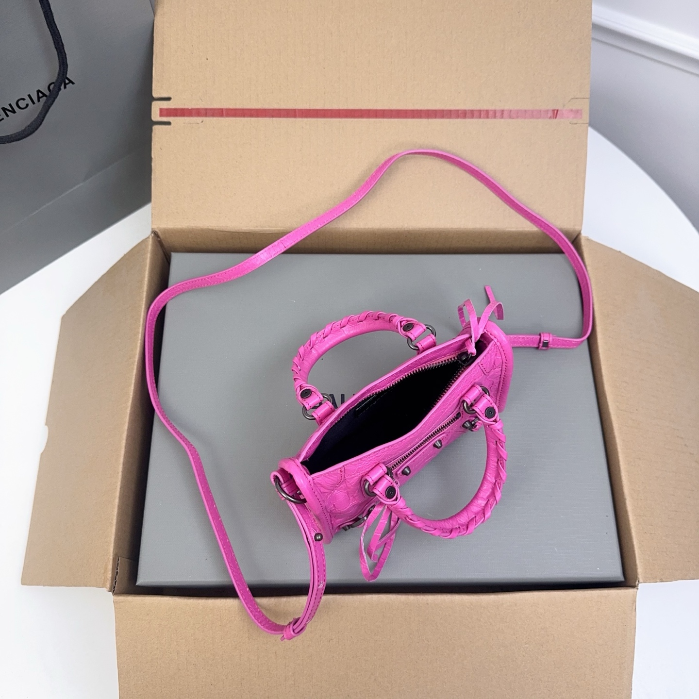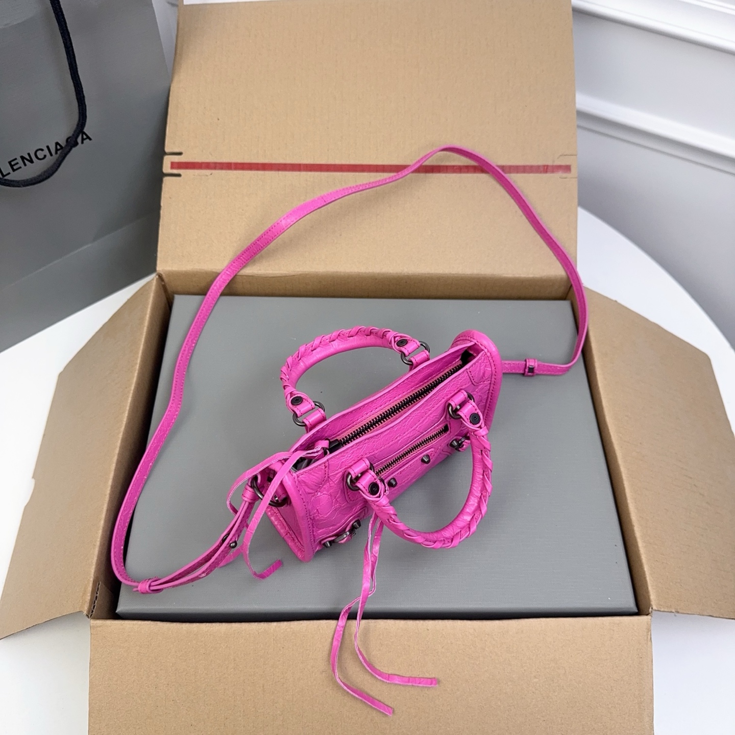 这款包包是AAAAA 1:1 质量 (非常棒). 使用了和原版一模一样的材料. 商标部分也保持了和巴黎世家/Balenciaga一样. 图片拍摄是实物包包拍摄, 您所收到的实物保证和我们图片一模一样.