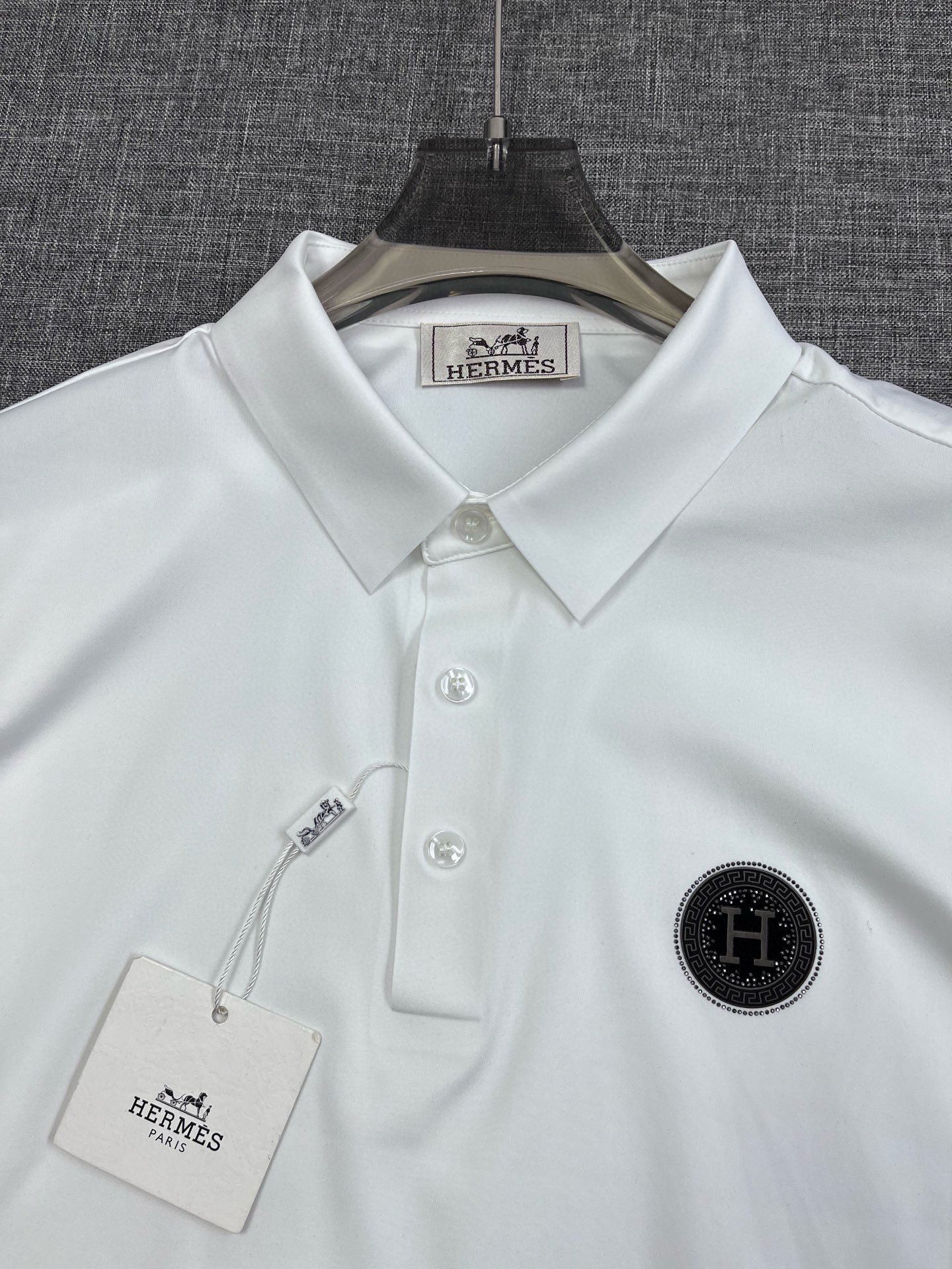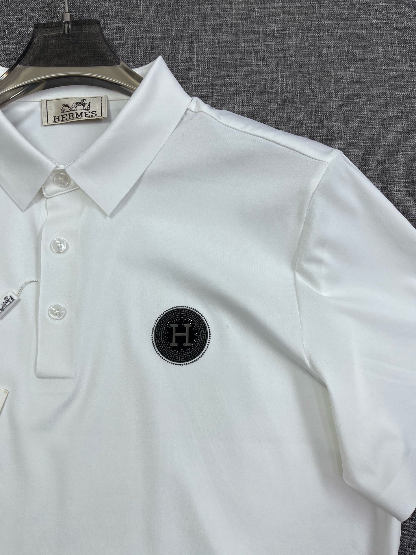这款衣服是AAAAA 1:1 质量 (非常棒). 使用了和原版一模一样的材料. 商标部分也保持了和爱马仕/Hermes一样. 图片拍摄是实物衣服拍摄, 您所收到的实物保证和我们图片一模一样.