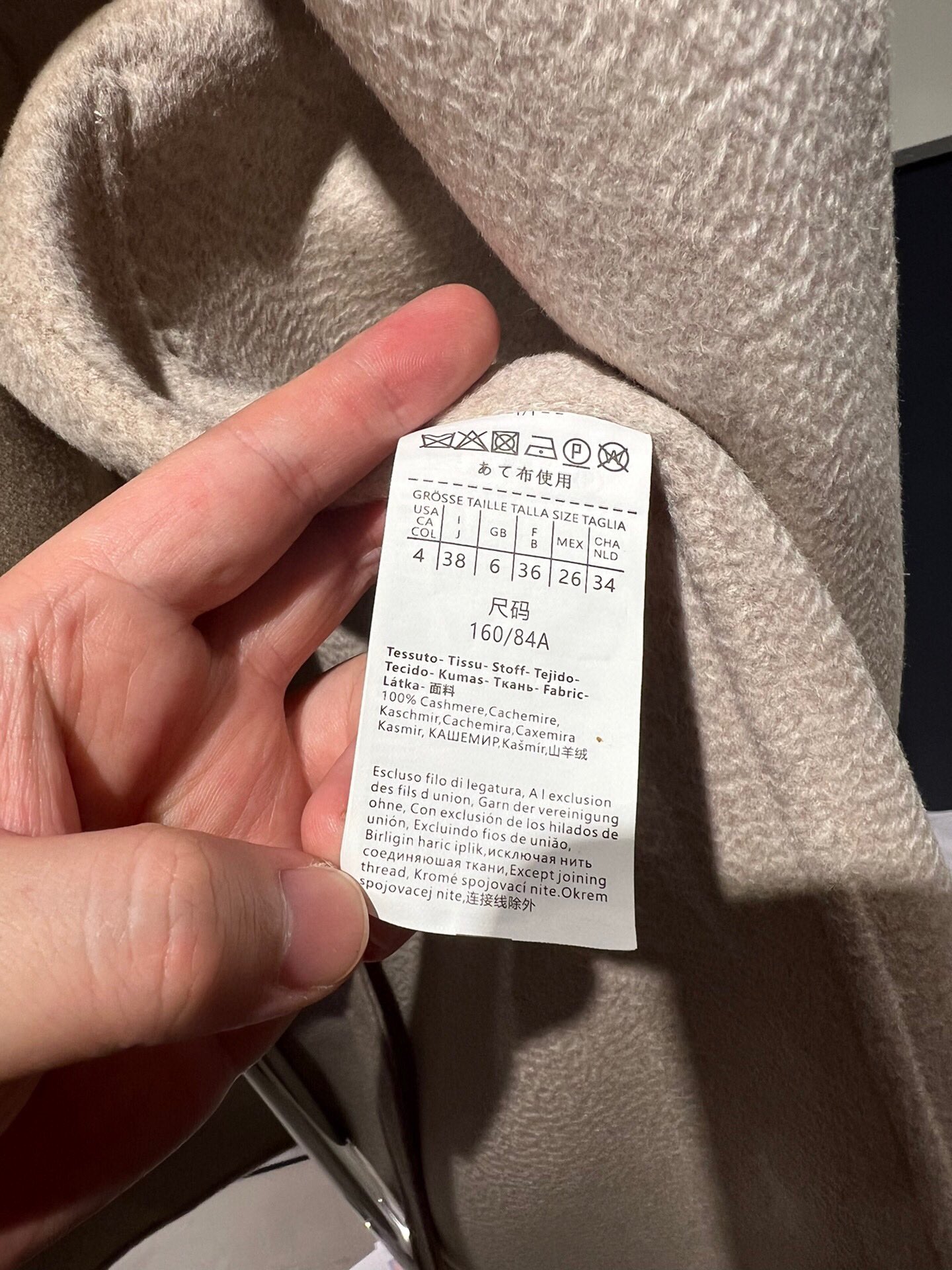 这款衣服是AAAAA 1:1 质量 (非常棒). 使用了和原版一模一样的材料. 商标部分也保持了和Max Mara一样. 图片拍摄是实物衣服拍摄, 您所收到的实物保证和我们图片一模一样.