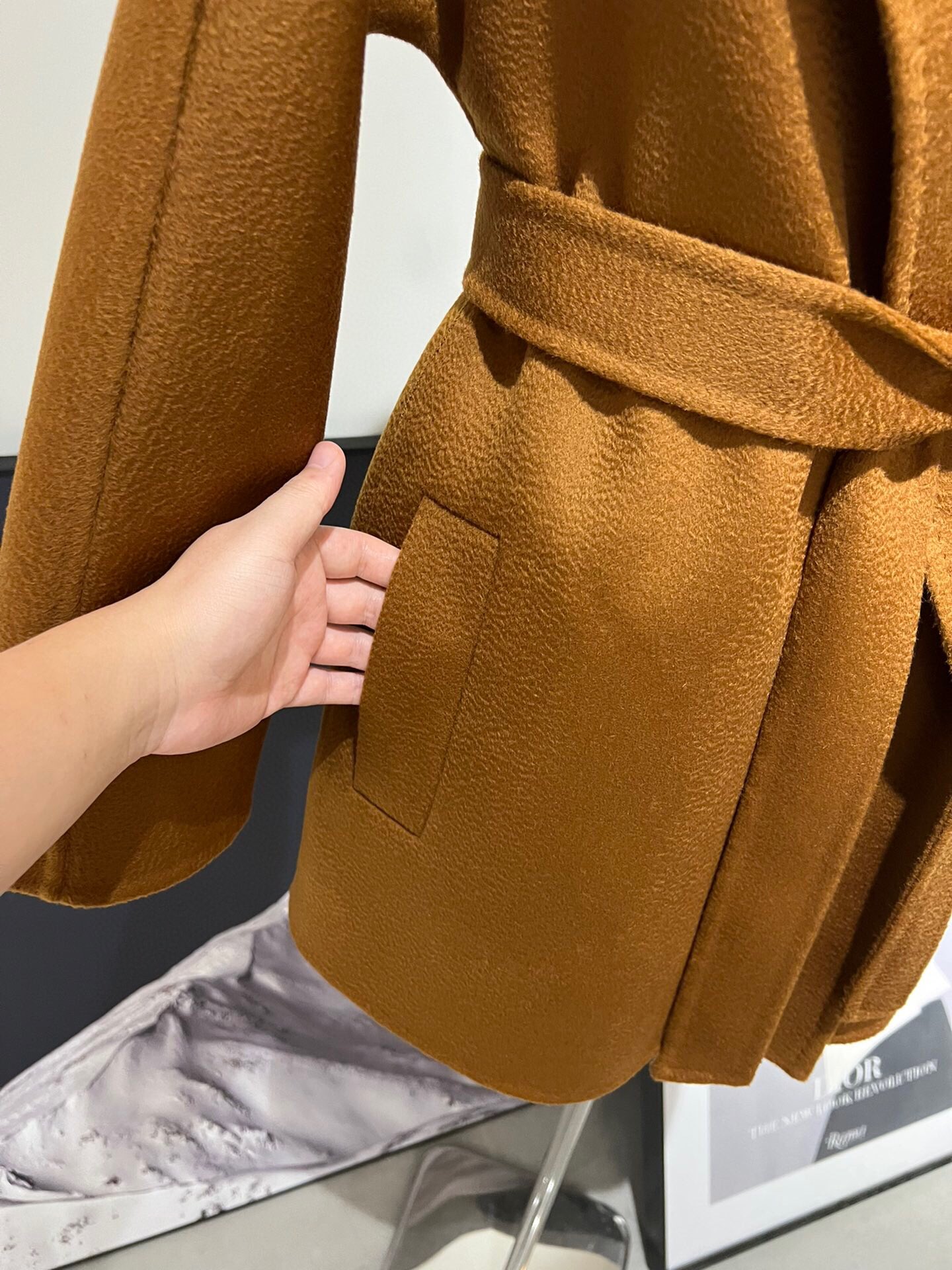 这款衣服是AAAAA 1:1 质量 (非常棒). 使用了和原版一模一样的材料. 商标部分也保持了和Max Mara一样. 图片拍摄是实物衣服拍摄, 您所收到的实物保证和我们图片一模一样.