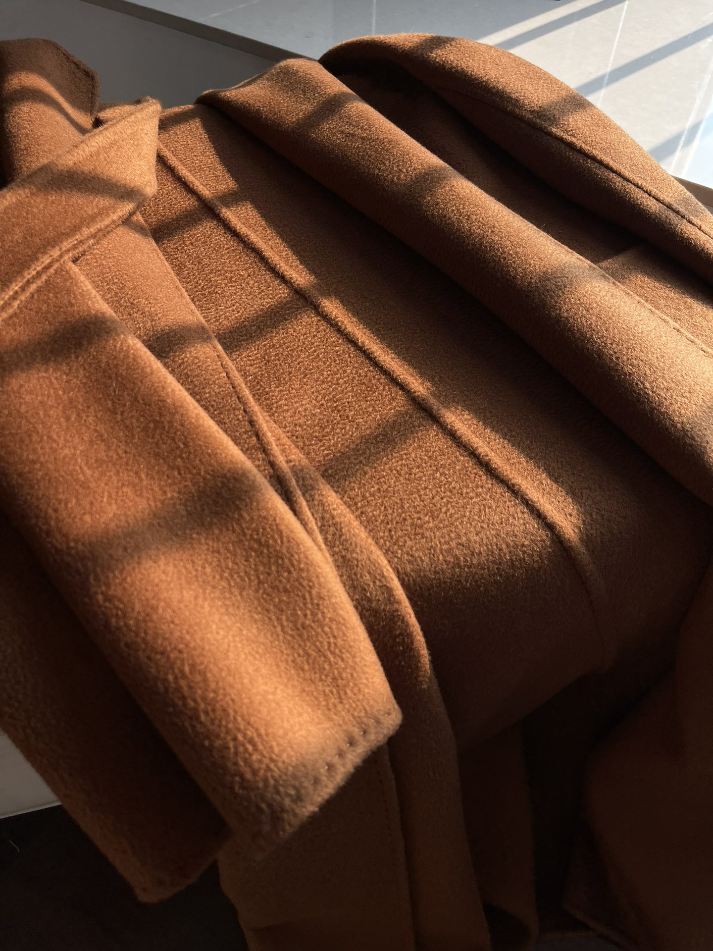 这款衣服是AAAAA 1:1 质量 (非常棒). 使用了和原版一模一样的材料. 商标部分也保持了和Max Mara一样. 图片拍摄是实物衣服拍摄, 您所收到的实物保证和我们图片一模一样.