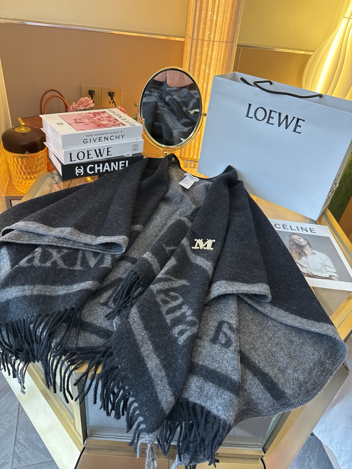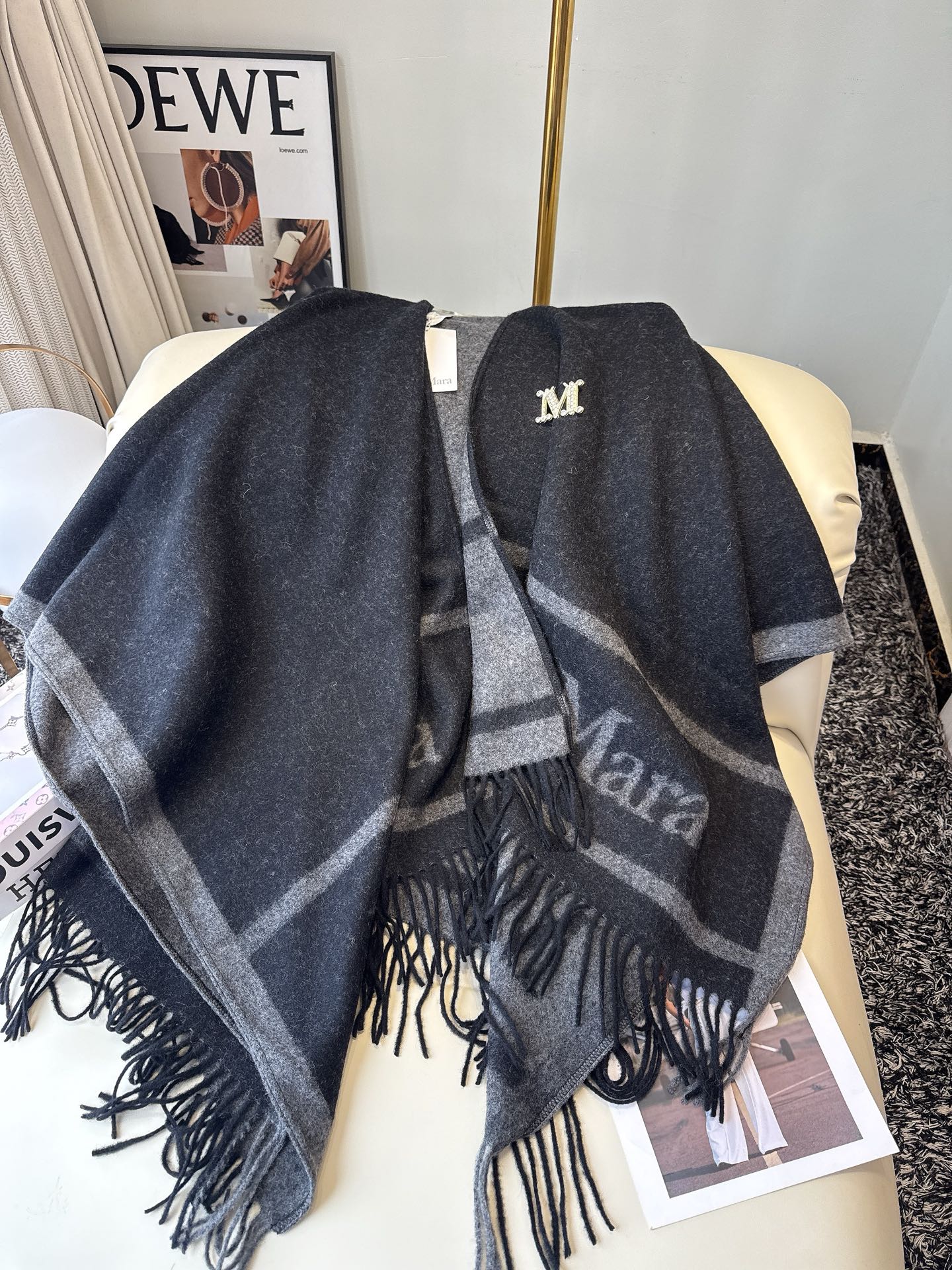 这款围巾是AAAAA 1:1 质量 (非常棒). 使用了和原版一模一样的材料. 商标部分也保持了和Max Mara一样. 图片拍摄是实物围巾拍摄, 您所收到的实物保证和我们图片一模一样.