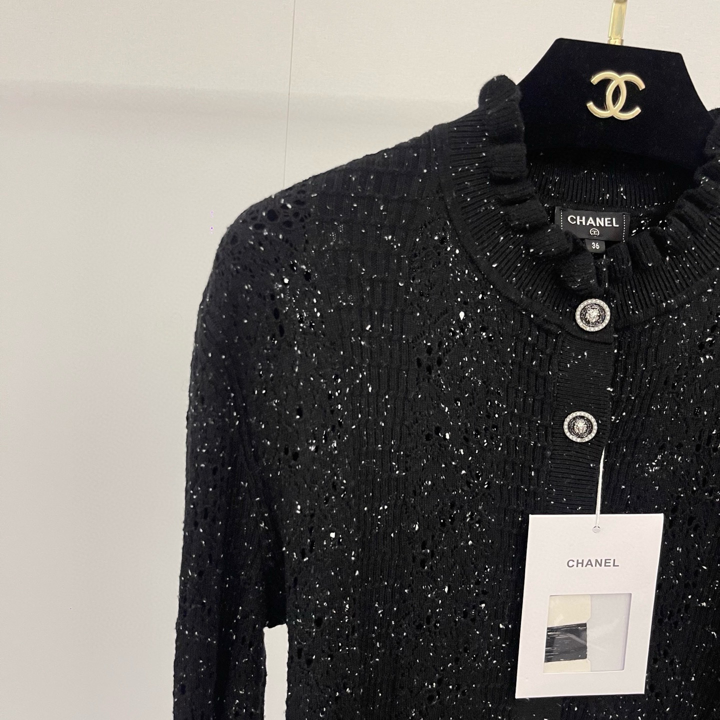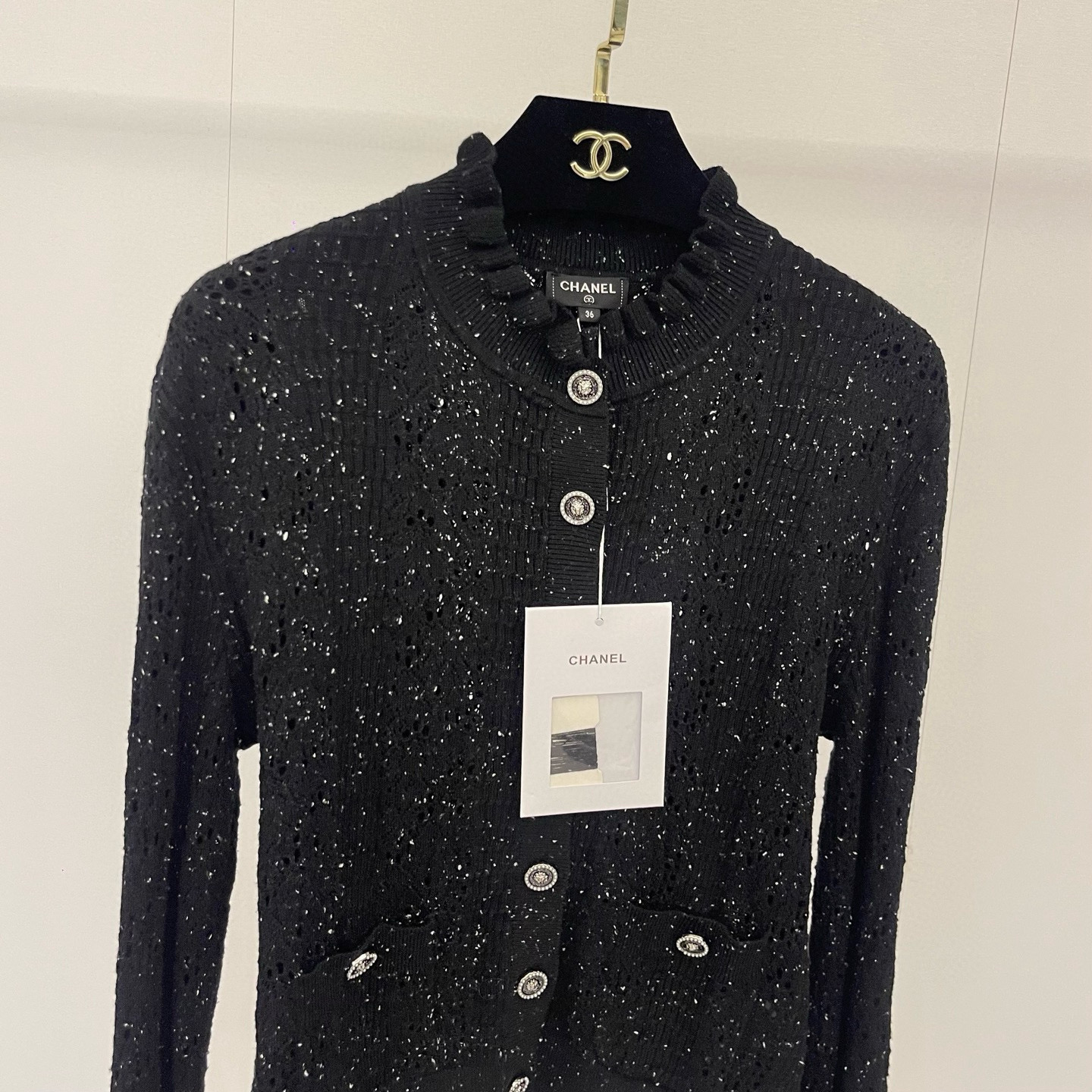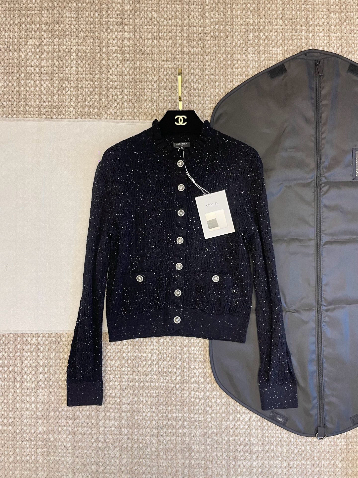 这款衣服是AAAAA 1:1 质量 (非常棒). 使用了和原版一模一样的材料. 商标部分也保持了和香奈儿/Chanel一样. 图片拍摄是实物衣服拍摄, 您所收到的实物保证和我们图片一模一样.