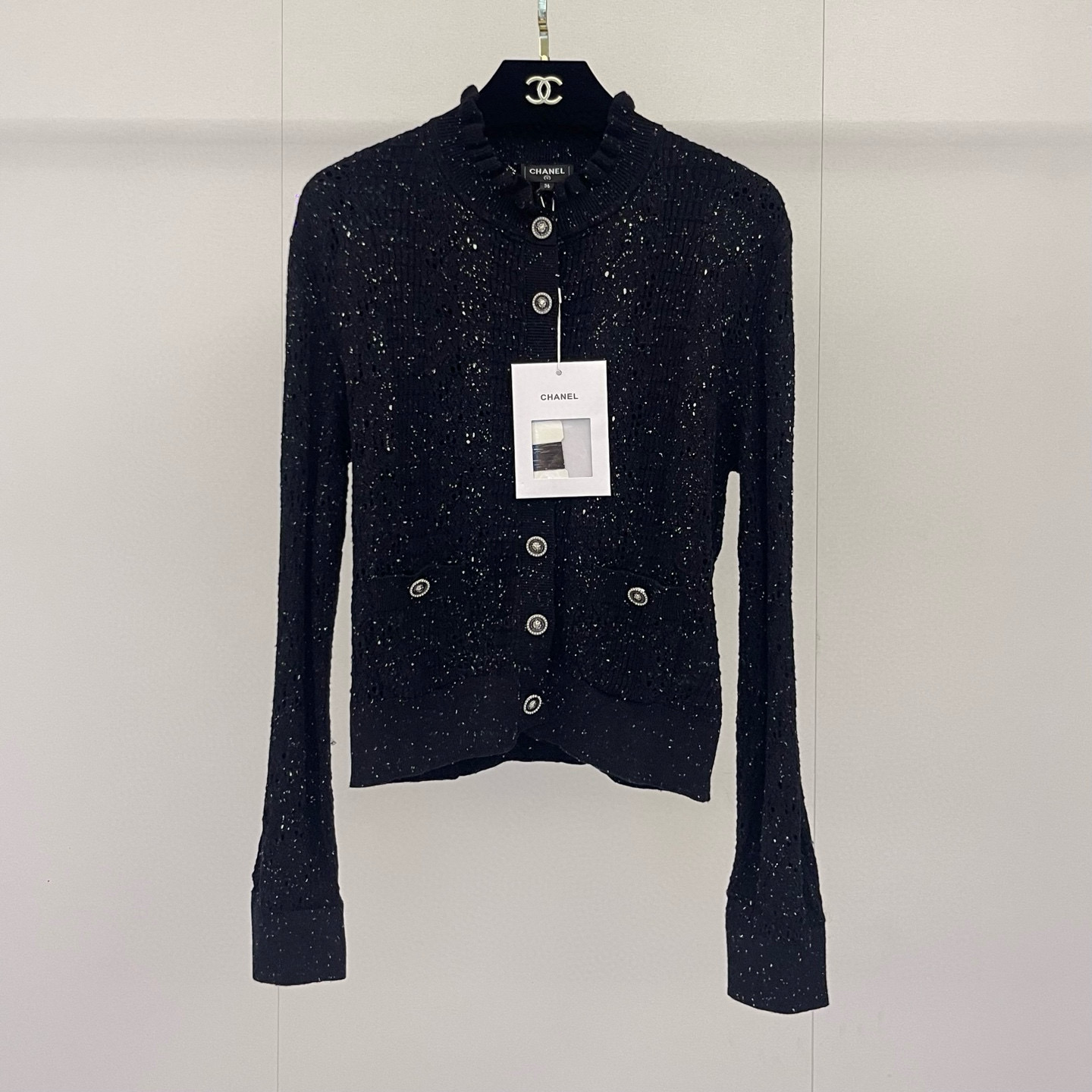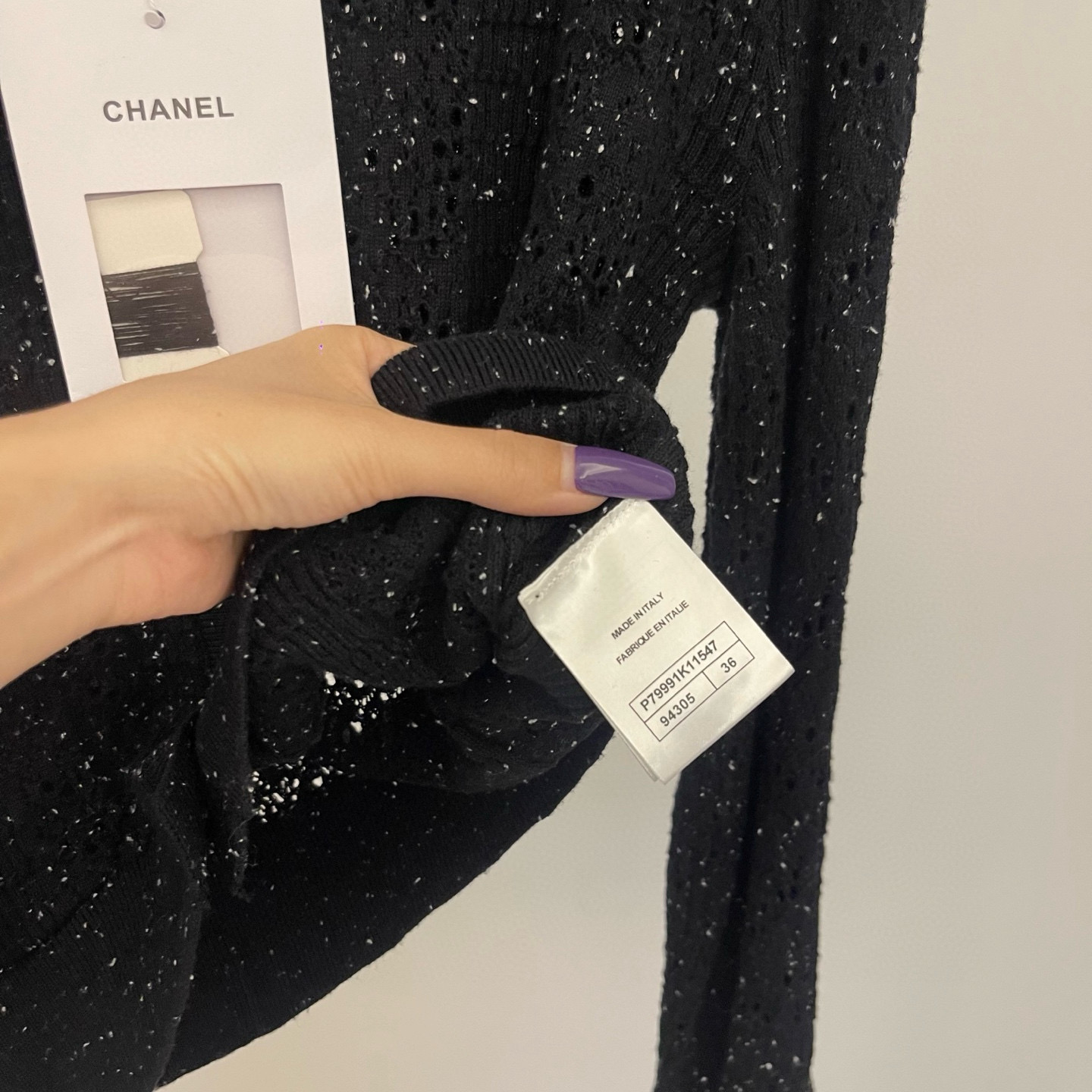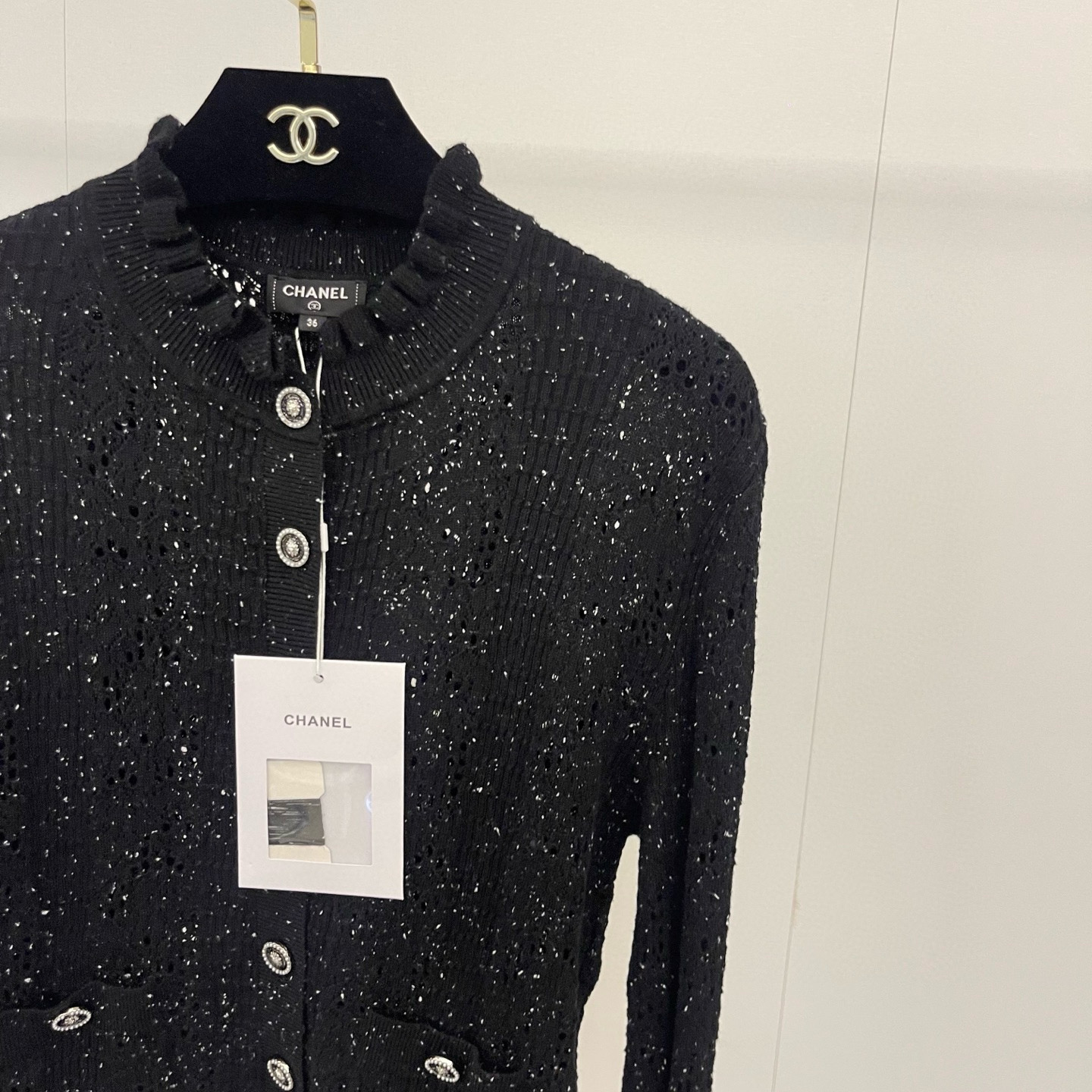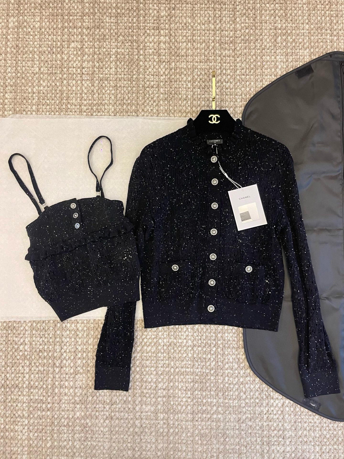 这款衣服是AAAAA 1:1 质量 (非常棒). 使用了和原版一模一样的材料. 商标部分也保持了和香奈儿/Chanel一样. 图片拍摄是实物衣服拍摄, 您所收到的实物保证和我们图片一模一样.
