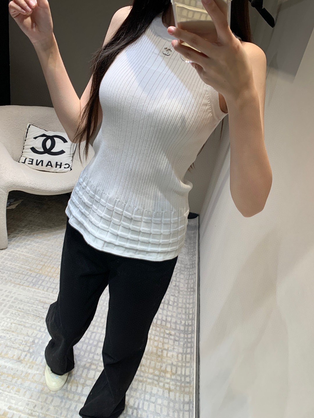 这款衣服是AAAAA 1:1 质量 (非常棒). 使用了和原版一模一样的材料. 商标部分也保持了和香奈儿/Chanel一样. 图片拍摄是实物衣服拍摄, 您所收到的实物保证和我们图片一模一样.