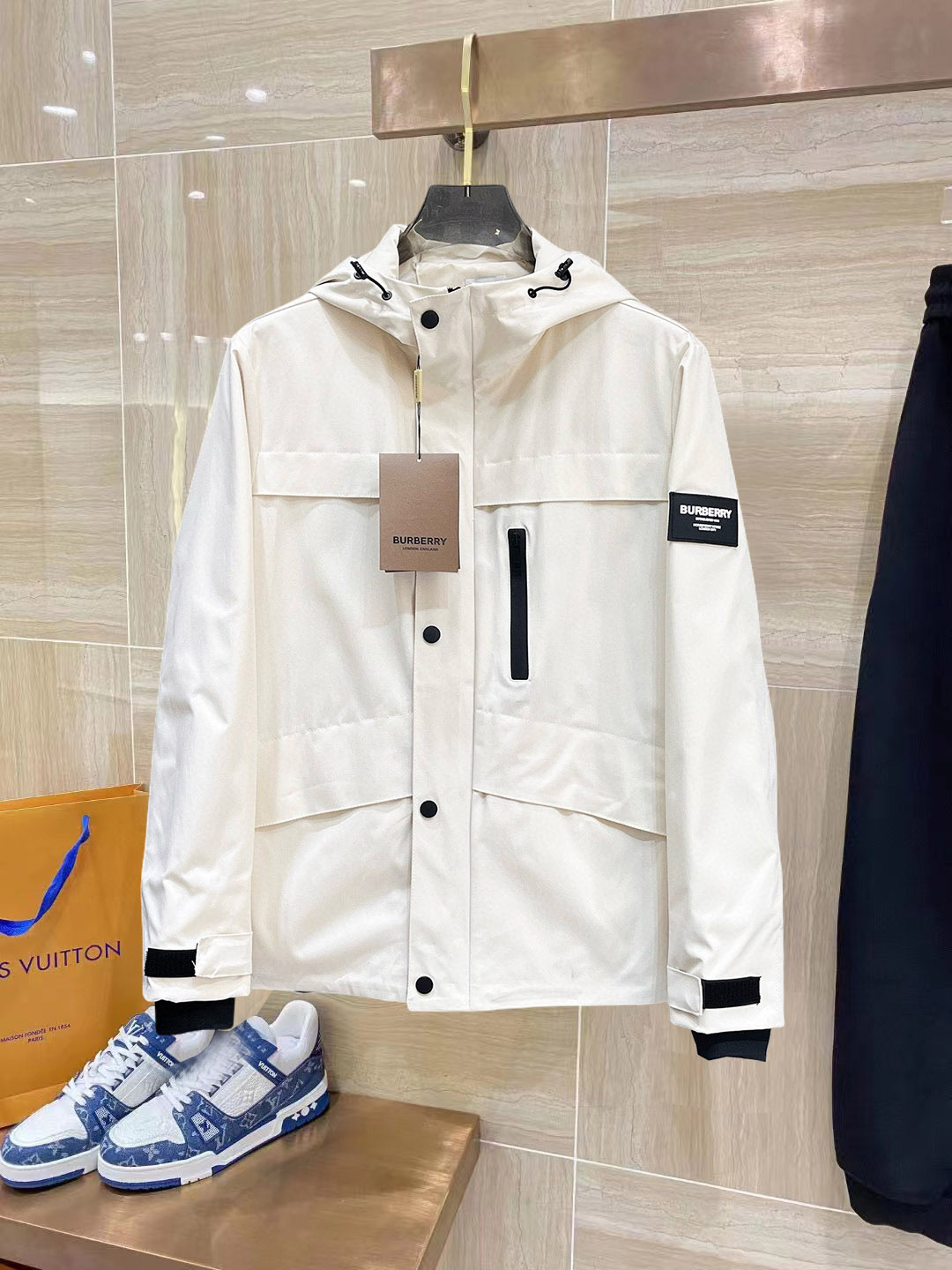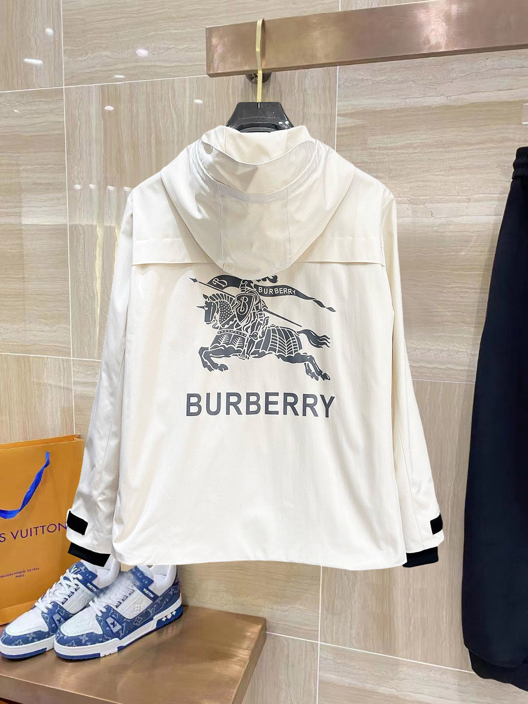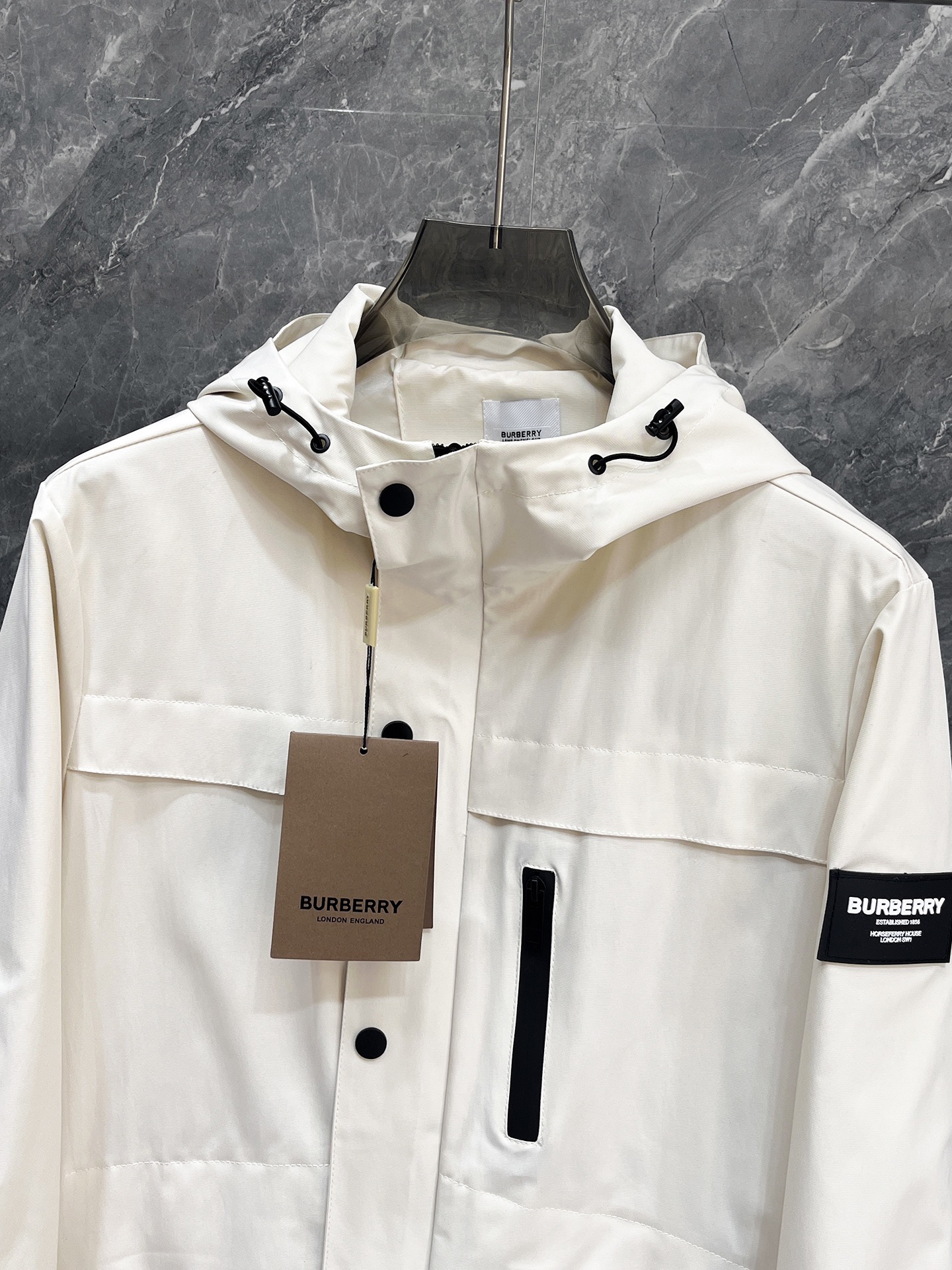 这款衣服是AAAAA 1:1 质量 (非常棒). 使用了和原版一模一样的材料. 商标部分也保持了和巴宝莉/Burberry一样. 图片拍摄是实物衣服拍摄, 您所收到的实物保证和我们图片一模一样.