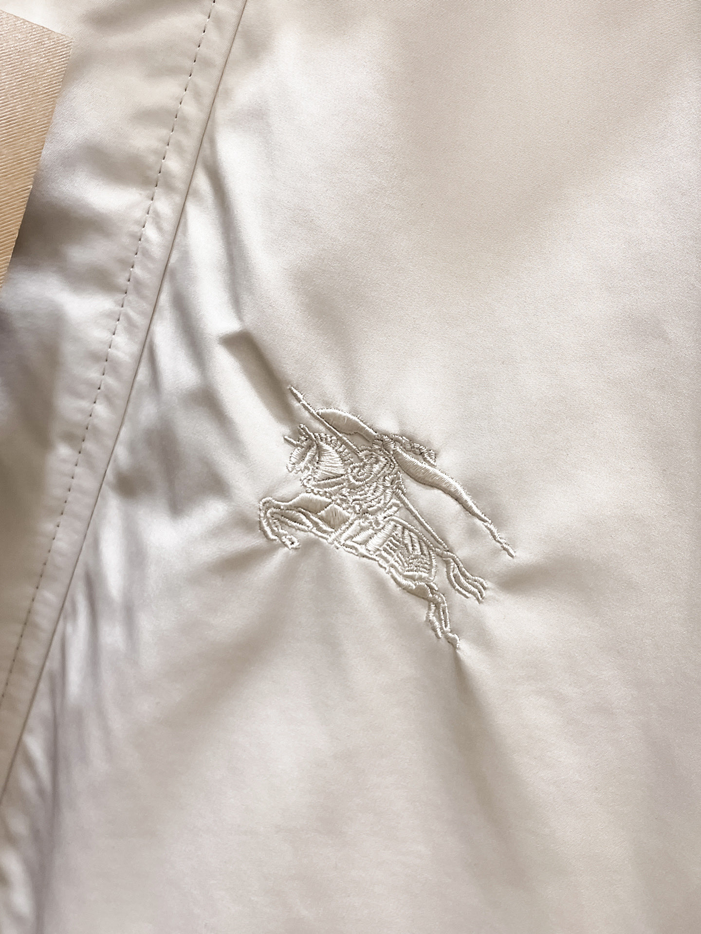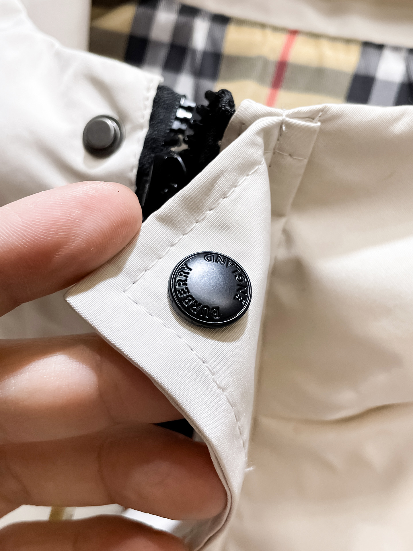 这款衣服是AAAAA 1:1 质量 (非常棒). 使用了和原版一模一样的材料. 商标部分也保持了和巴宝莉/Burberry一样. 图片拍摄是实物衣服拍摄, 您所收到的实物保证和我们图片一模一样.