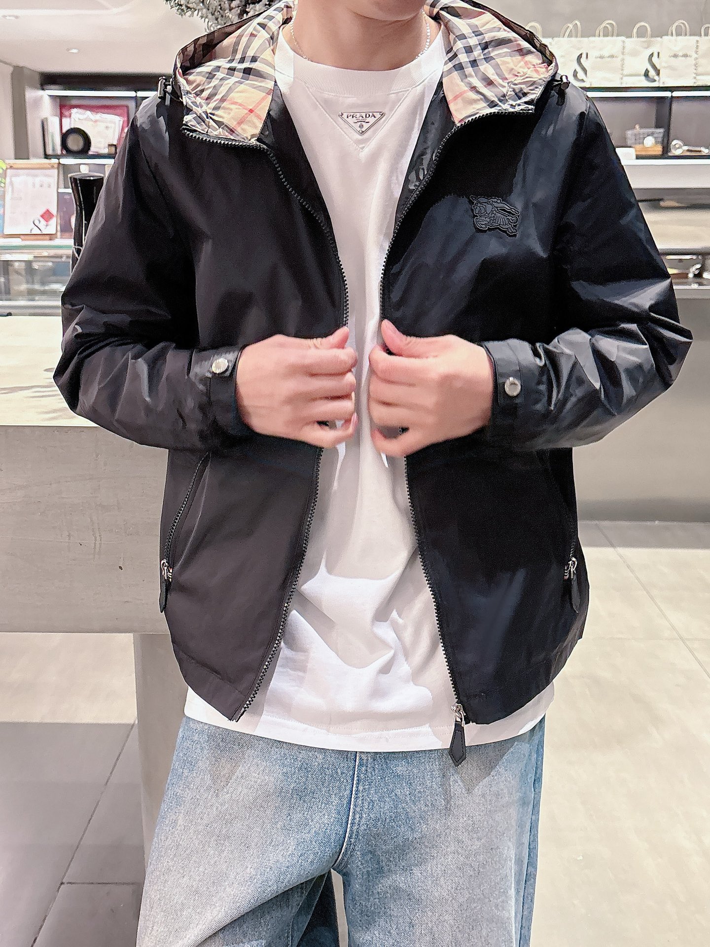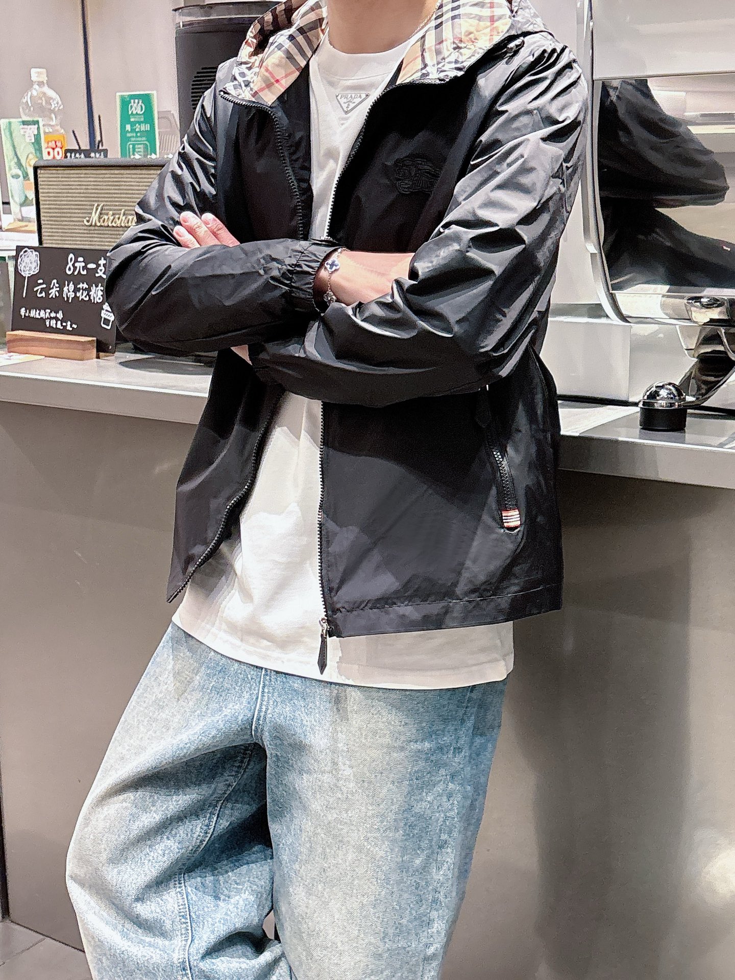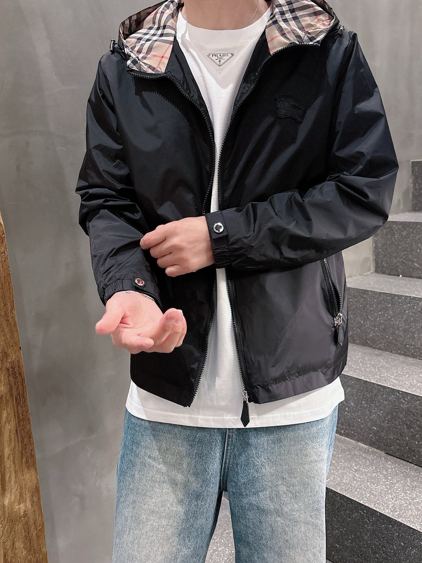 这款衣服是AAAAA 1:1 质量 (非常棒). 使用了和原版一模一样的材料. 商标部分也保持了和巴宝莉/Burberry一样. 图片拍摄是实物衣服拍摄, 您所收到的实物保证和我们图片一模一样.