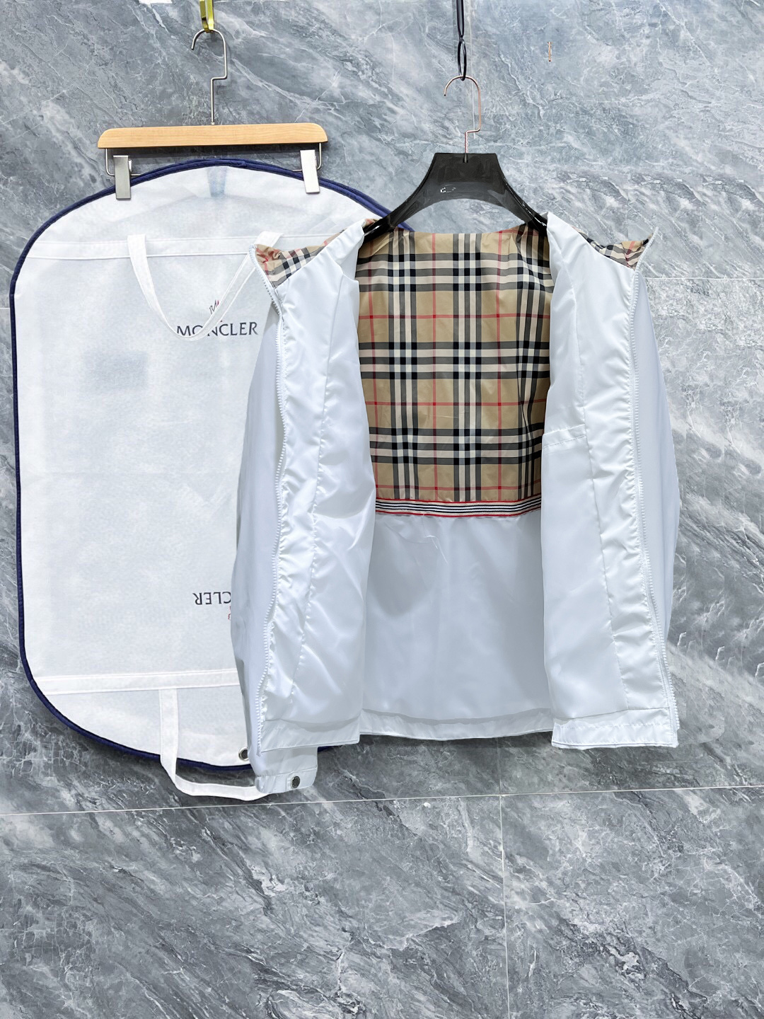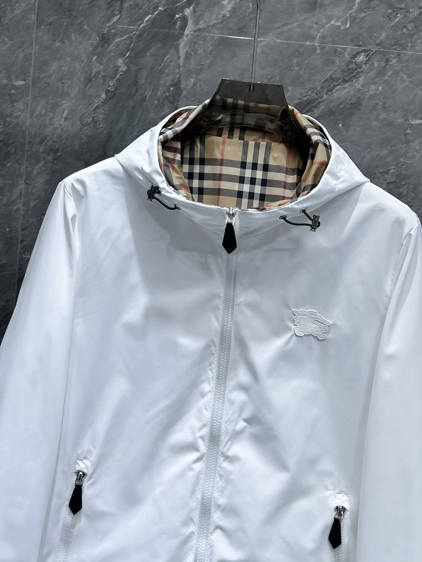 这款衣服是AAAAA 1:1 质量 (非常棒). 使用了和原版一模一样的材料. 商标部分也保持了和巴宝莉/Burberry一样. 图片拍摄是实物衣服拍摄, 您所收到的实物保证和我们图片一模一样.