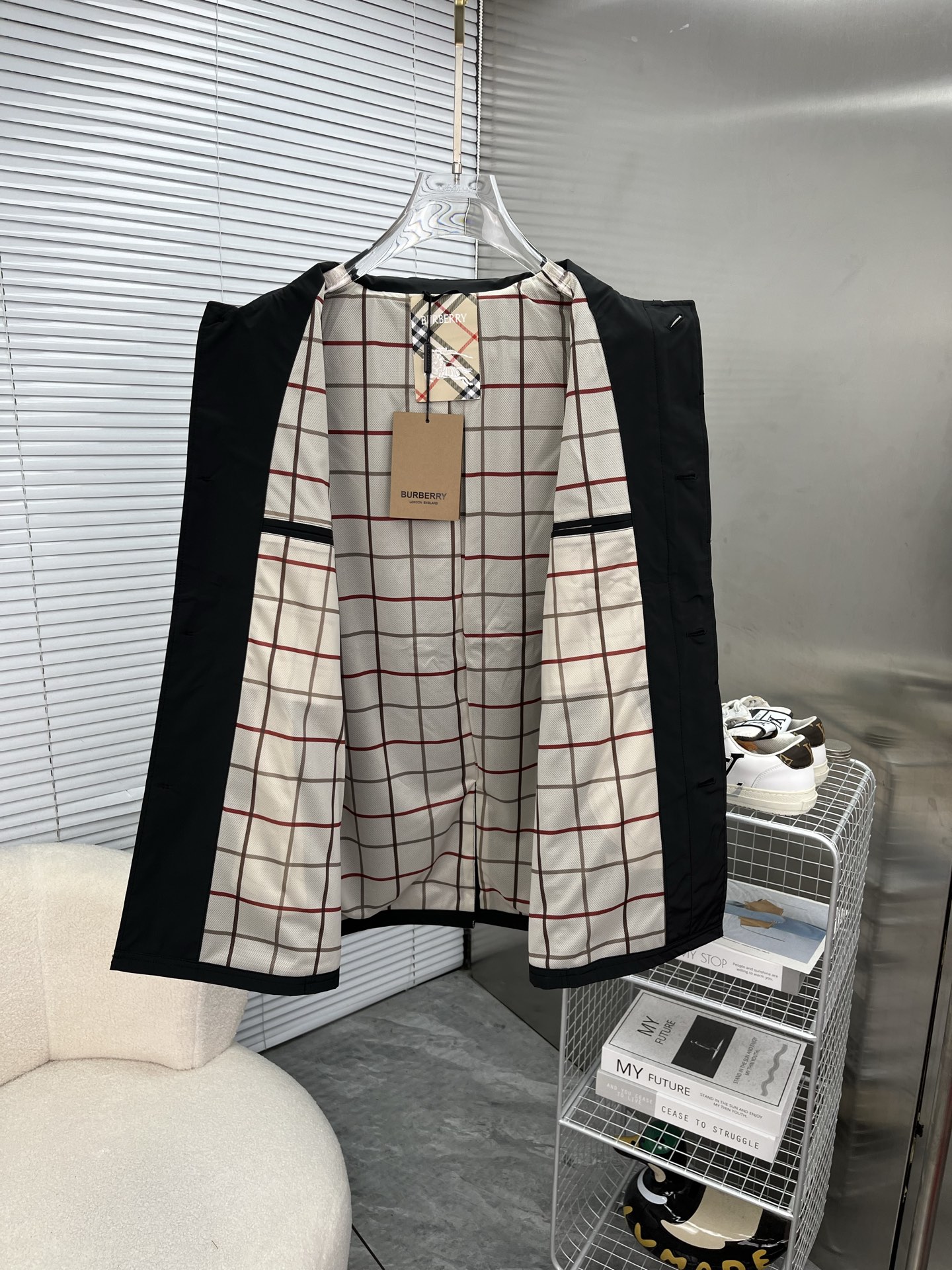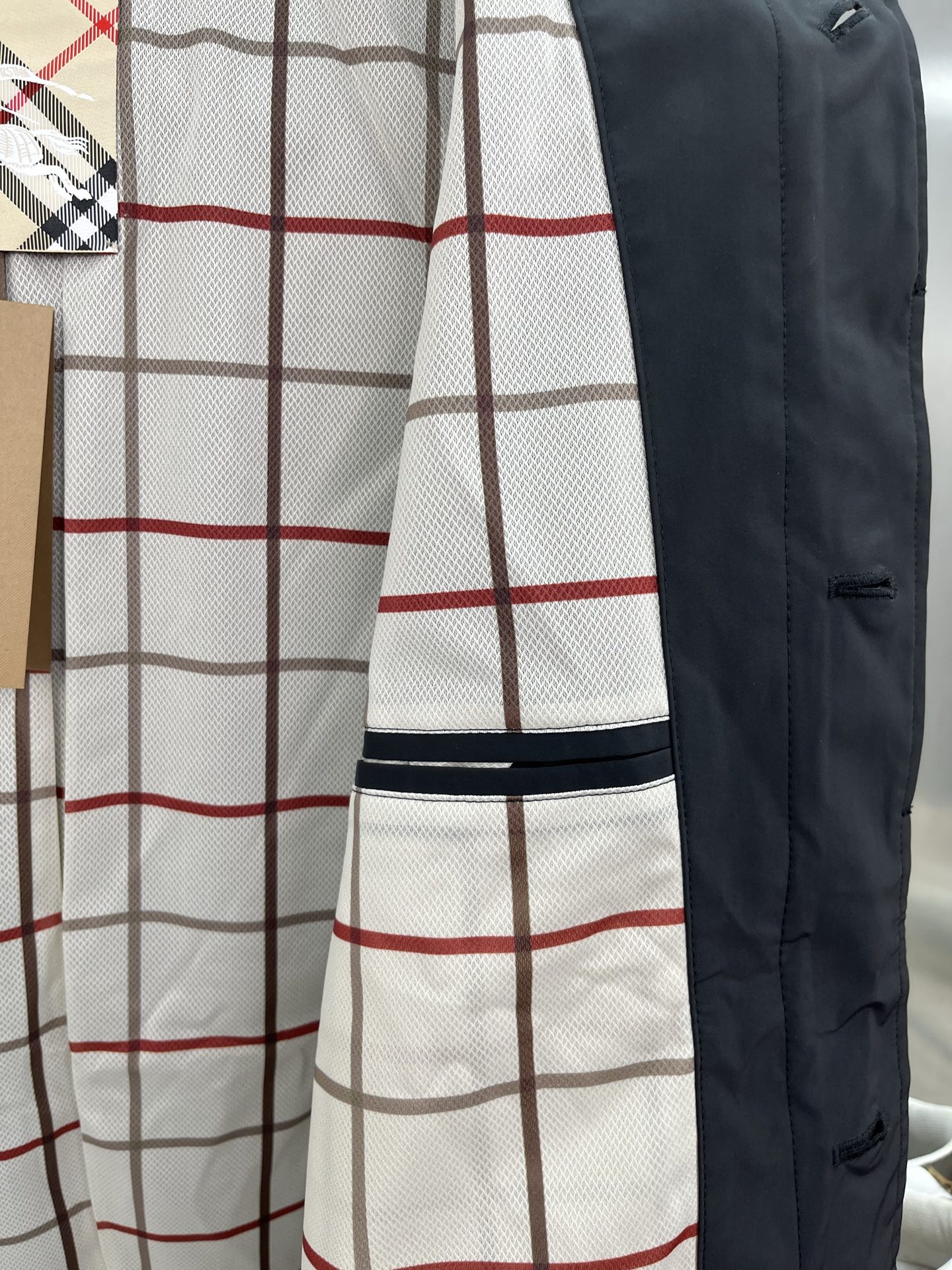 这款衣服是AAAAA 1:1 质量 (非常棒). 使用了和原版一模一样的材料. 商标部分也保持了和巴宝莉/Burberry一样. 图片拍摄是实物衣服拍摄, 您所收到的实物保证和我们图片一模一样.
