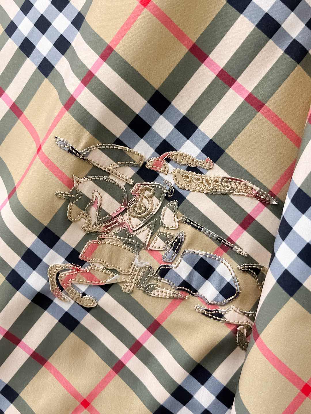 这款衣服是AAAAA 1:1 质量 (非常棒). 使用了和原版一模一样的材料. 商标部分也保持了和巴宝莉/Burberry一样. 图片拍摄是实物衣服拍摄, 您所收到的实物保证和我们图片一模一样.