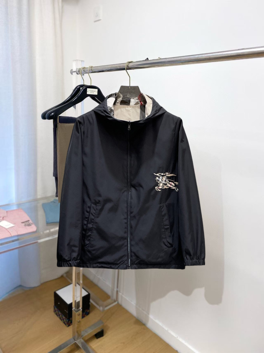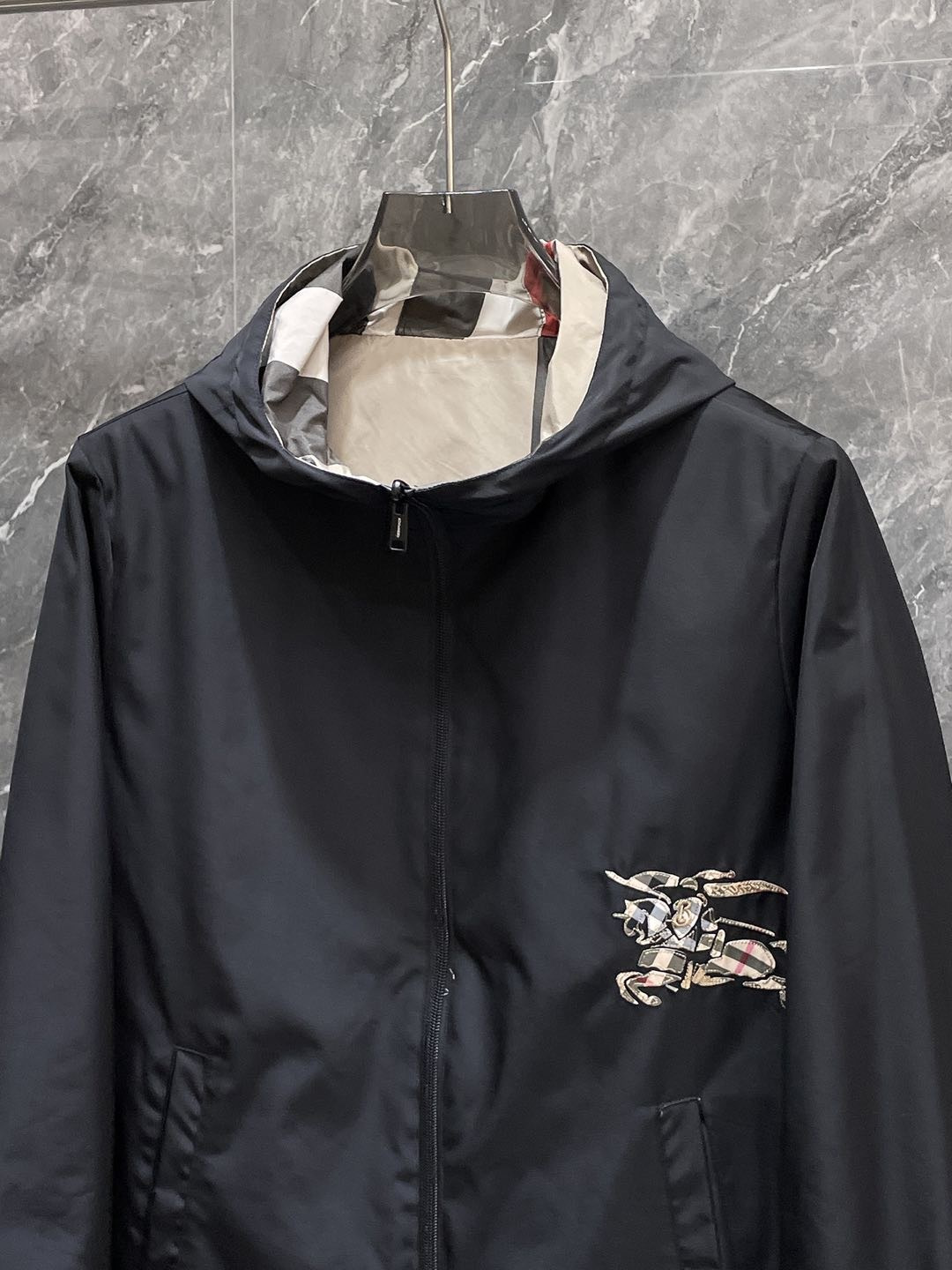 这款衣服是AAAAA 1:1 质量 (非常棒). 使用了和原版一模一样的材料. 商标部分也保持了和巴宝莉/Burberry一样. 图片拍摄是实物衣服拍摄, 您所收到的实物保证和我们图片一模一样.