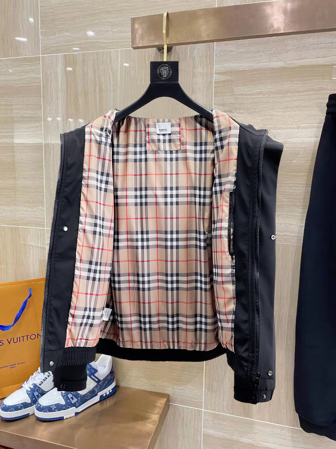 这款衣服是AAAAA 1:1 质量 (非常棒). 使用了和原版一模一样的材料. 商标部分也保持了和巴宝莉/Burberry一样. 图片拍摄是实物衣服拍摄, 您所收到的实物保证和我们图片一模一样.
