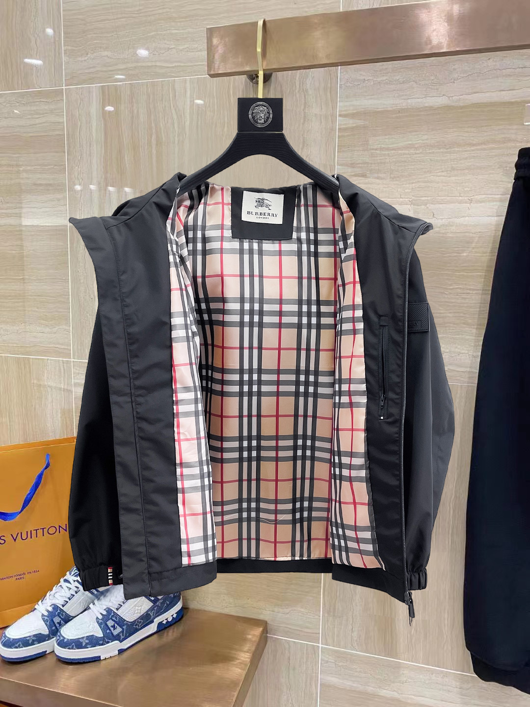这款衣服是AAAAA 1:1 质量 (非常棒). 使用了和原版一模一样的材料. 商标部分也保持了和巴宝莉/Burberry一样. 图片拍摄是实物衣服拍摄, 您所收到的实物保证和我们图片一模一样.