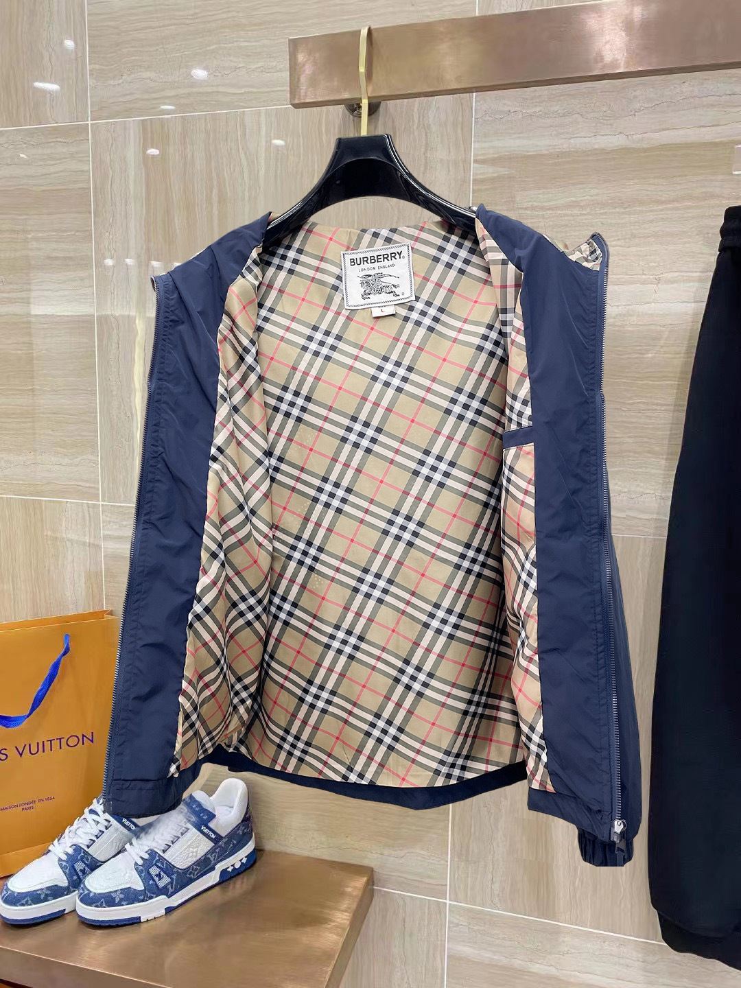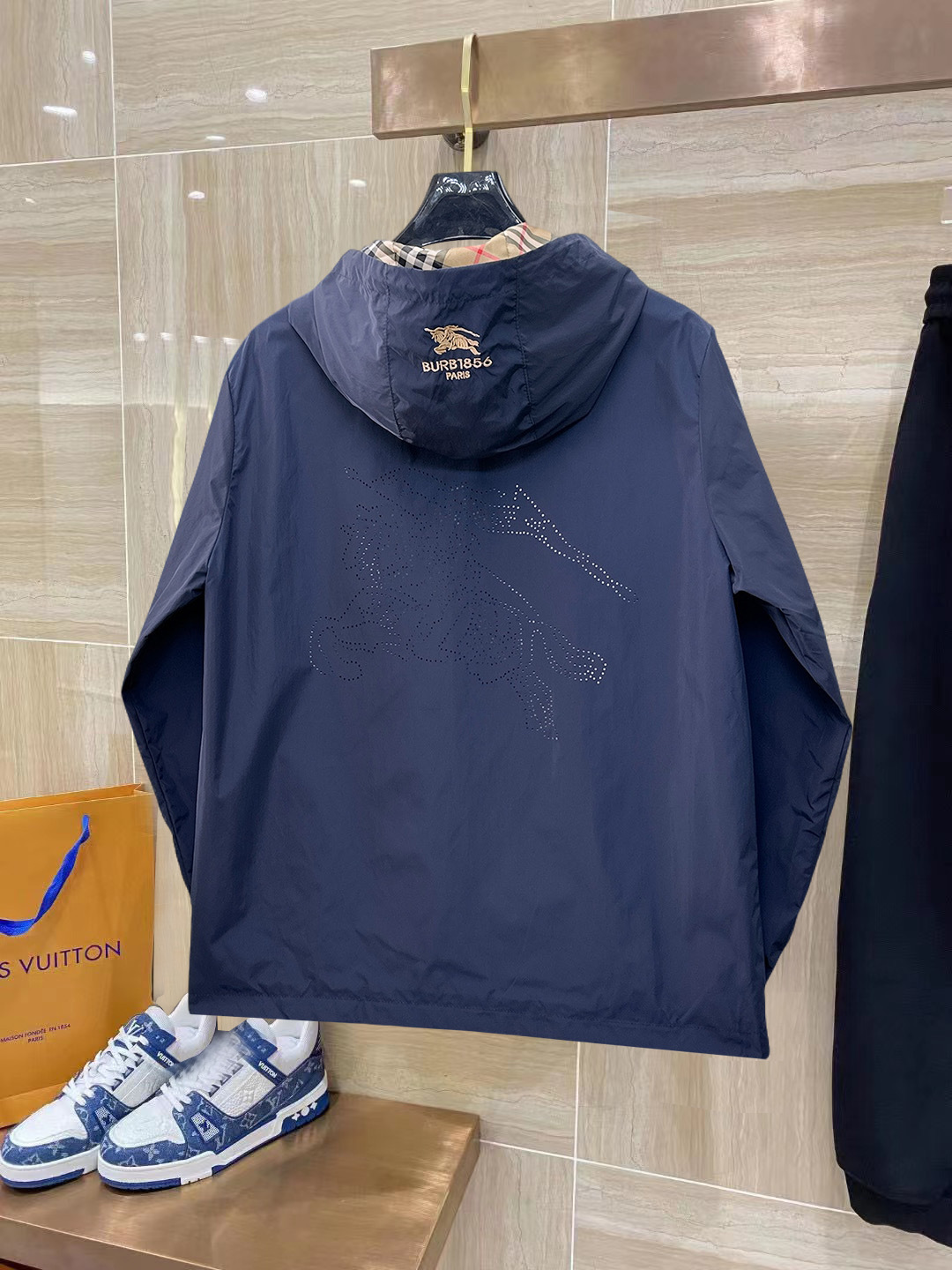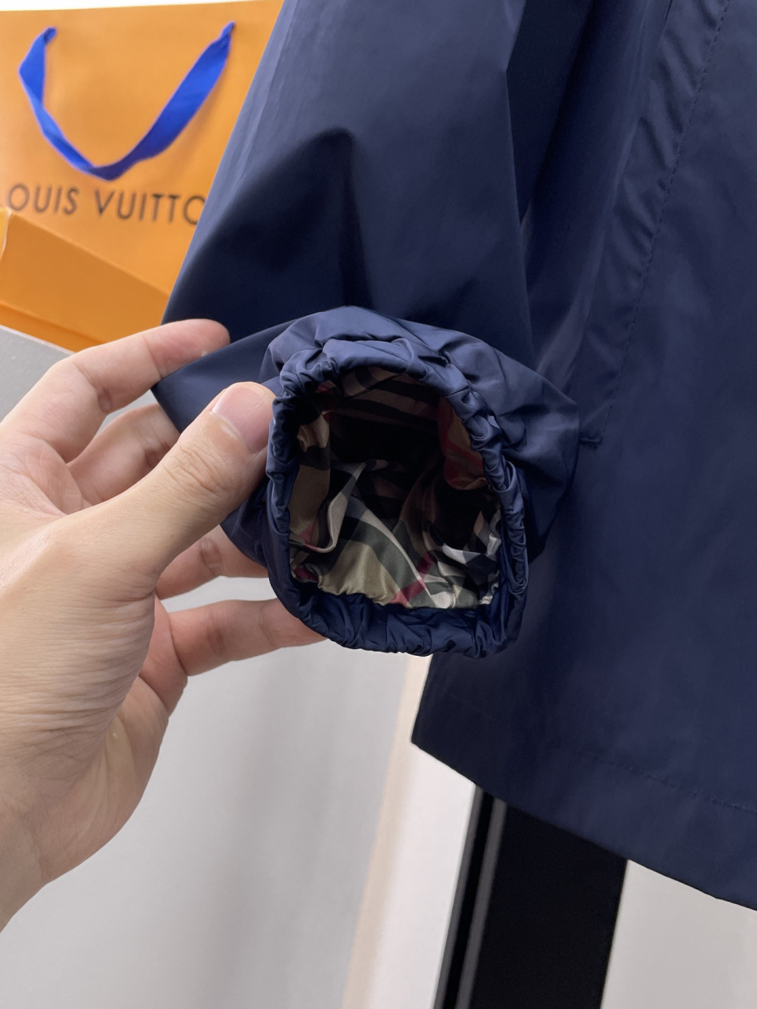 这款衣服是AAAAA 1:1 质量 (非常棒). 使用了和原版一模一样的材料. 商标部分也保持了和巴宝莉/Burberry一样. 图片拍摄是实物衣服拍摄, 您所收到的实物保证和我们图片一模一样.