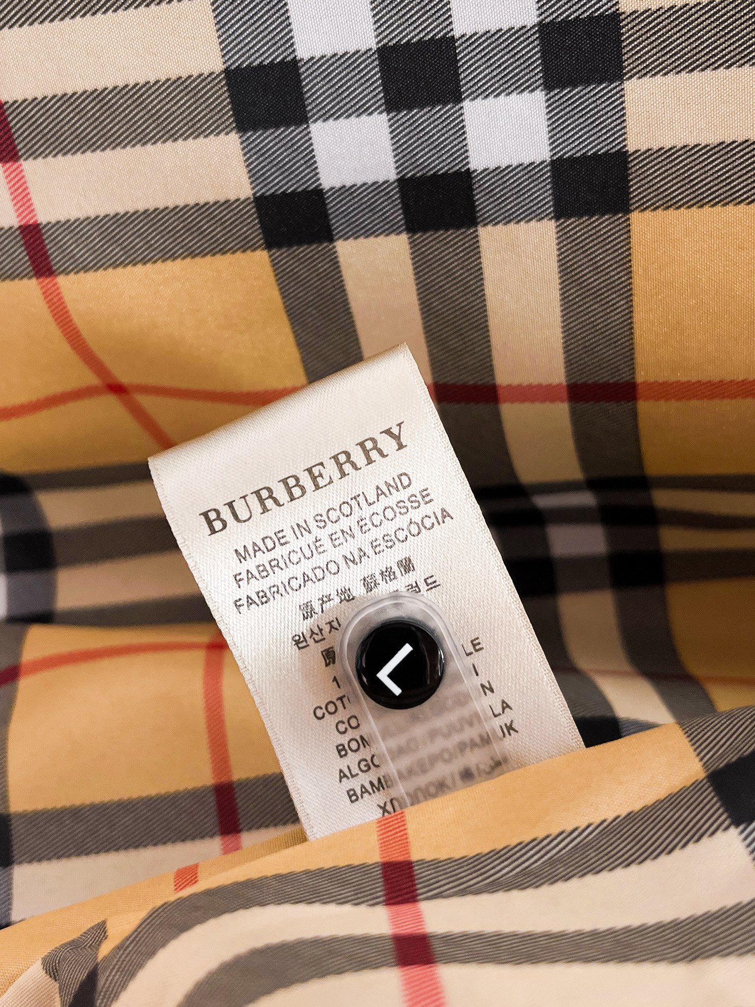 这款衣服是AAAAA 1:1 质量 (非常棒). 使用了和原版一模一样的材料. 商标部分也保持了和巴宝莉/Burberry一样. 图片拍摄是实物衣服拍摄, 您所收到的实物保证和我们图片一模一样.