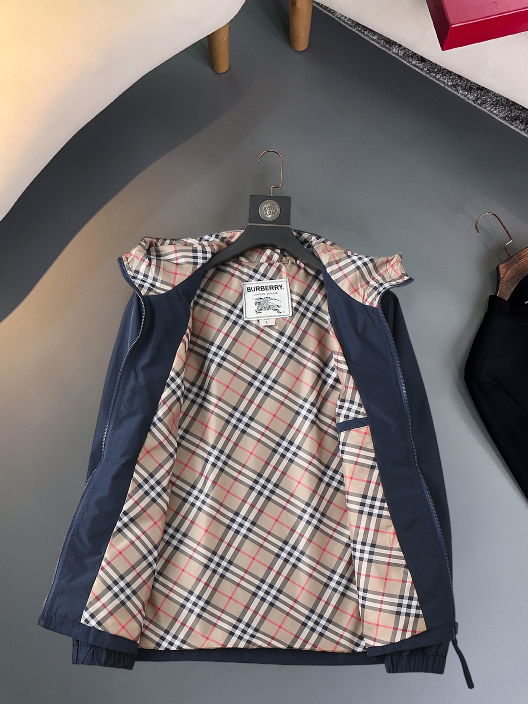 这款衣服是AAAAA 1:1 质量 (非常棒). 使用了和原版一模一样的材料. 商标部分也保持了和巴宝莉/Burberry一样. 图片拍摄是实物衣服拍摄, 您所收到的实物保证和我们图片一模一样.