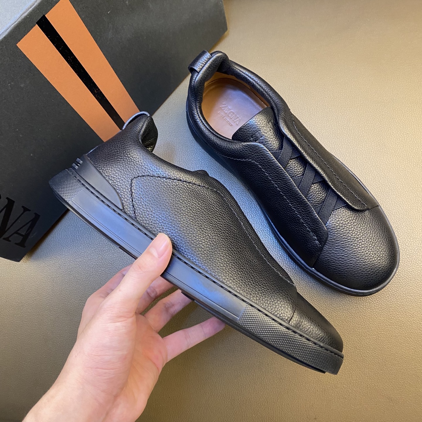 这款鞋子是AAAAA 1:1 质量 (非常棒). 使用了和原版一模一样的材料. 商标部分也保持了和杰尼亚/Zegna一样. 图片拍摄是实物鞋子拍摄, 您所收到的实物保证和我们图片一模一样.