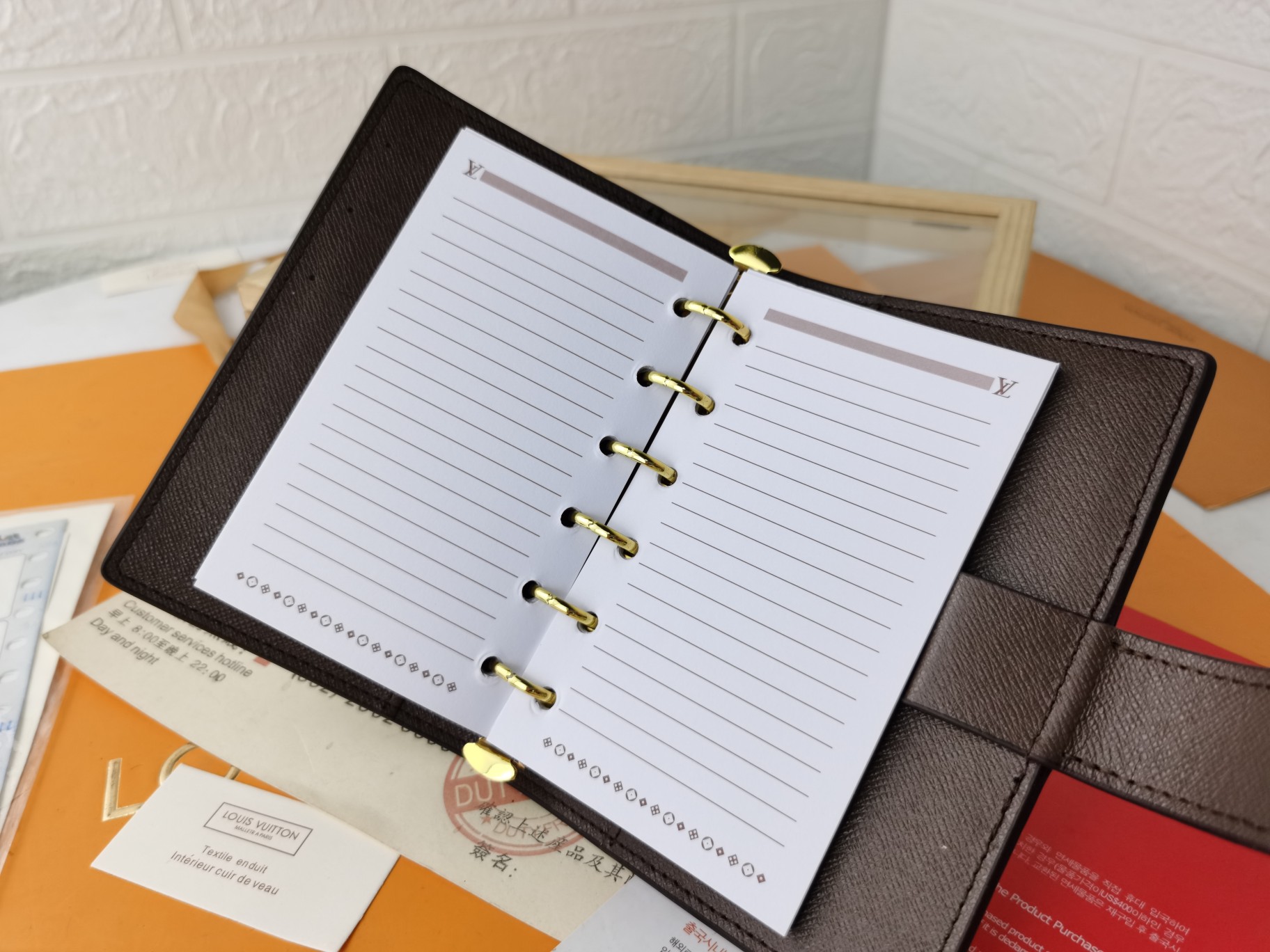 这款notepad是AAAAA 1:1 质量 (非常棒). 使用了和原版一模一样的材料. 商标部分也保持了和路易威登/Louis Vuitton一样. 图片拍摄是实物notepad拍摄, 您所收到的实物保证和我们图片一模一样.