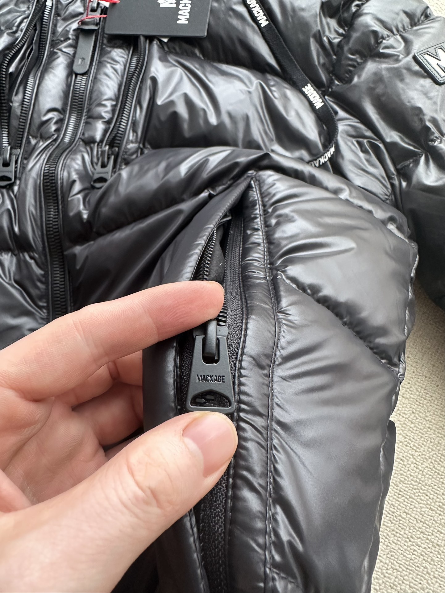 这款衣服是AAAAA 1:1 质量 (非常棒). 使用了和原版一模一样的材料. 商标部分也保持了和Mackage一样. 图片拍摄是实物衣服拍摄, 您所收到的实物保证和我们图片一模一样.