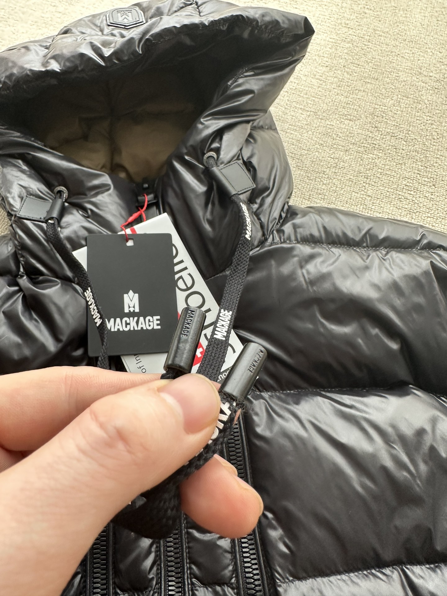 这款衣服是AAAAA 1:1 质量 (非常棒). 使用了和原版一模一样的材料. 商标部分也保持了和Mackage一样. 图片拍摄是实物衣服拍摄, 您所收到的实物保证和我们图片一模一样.