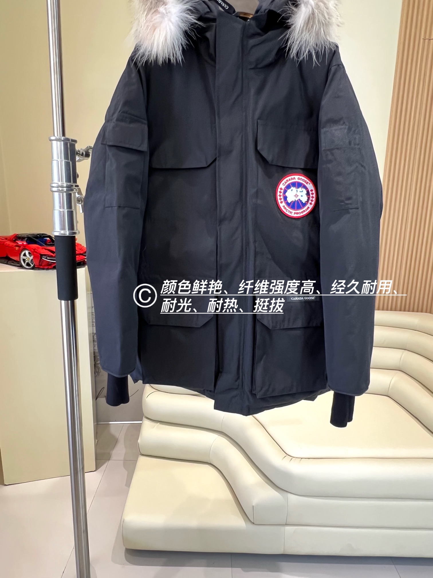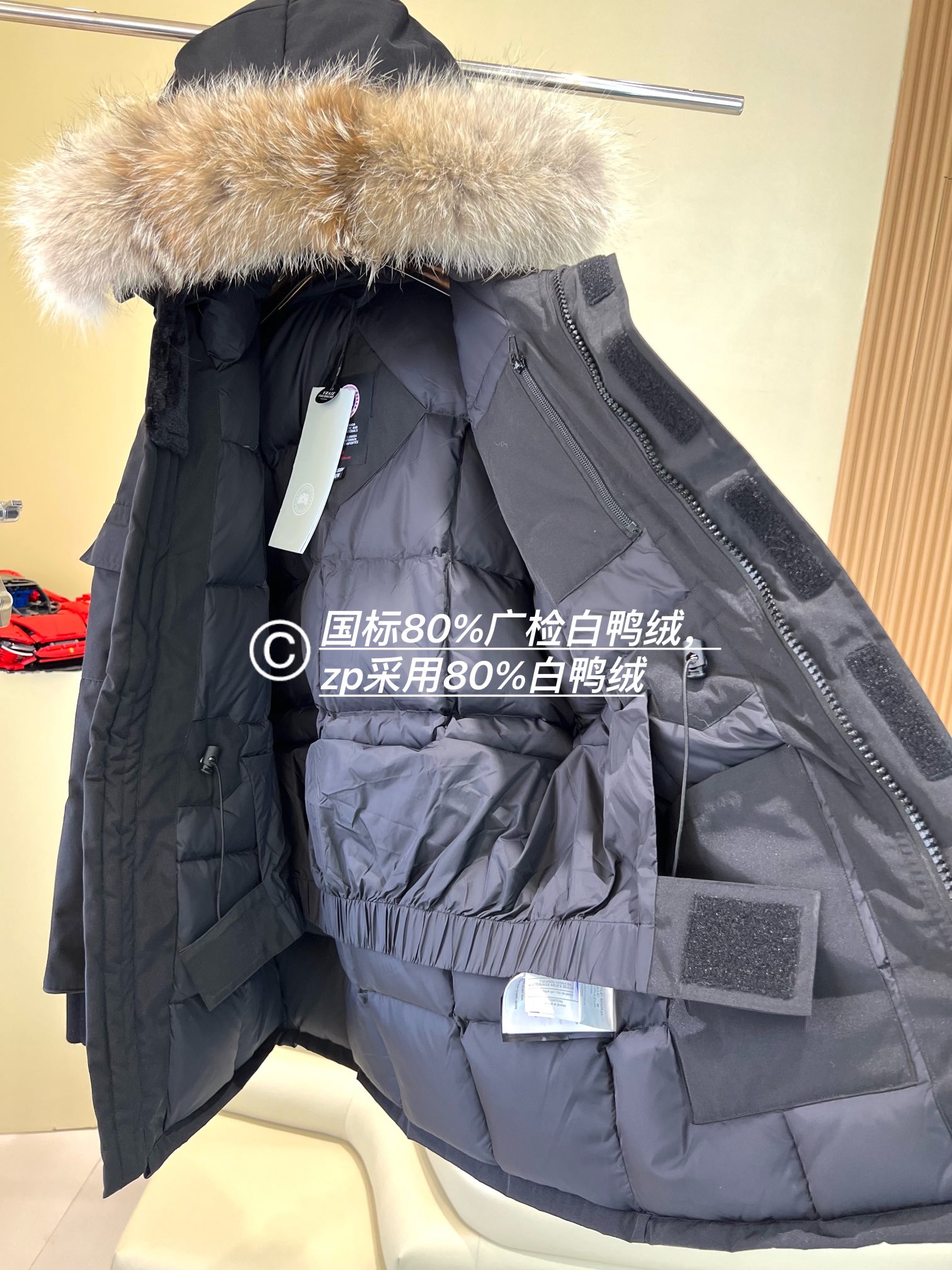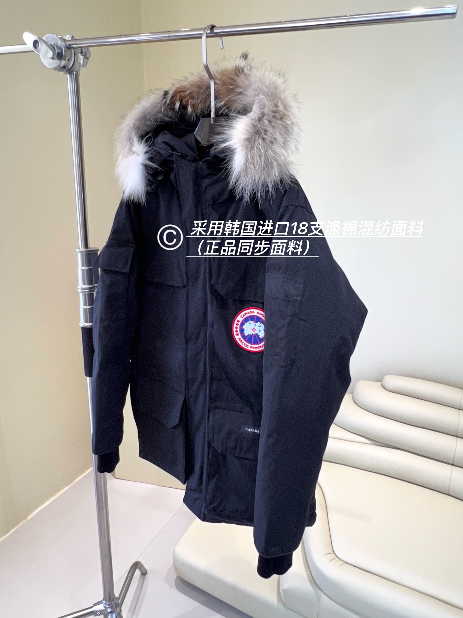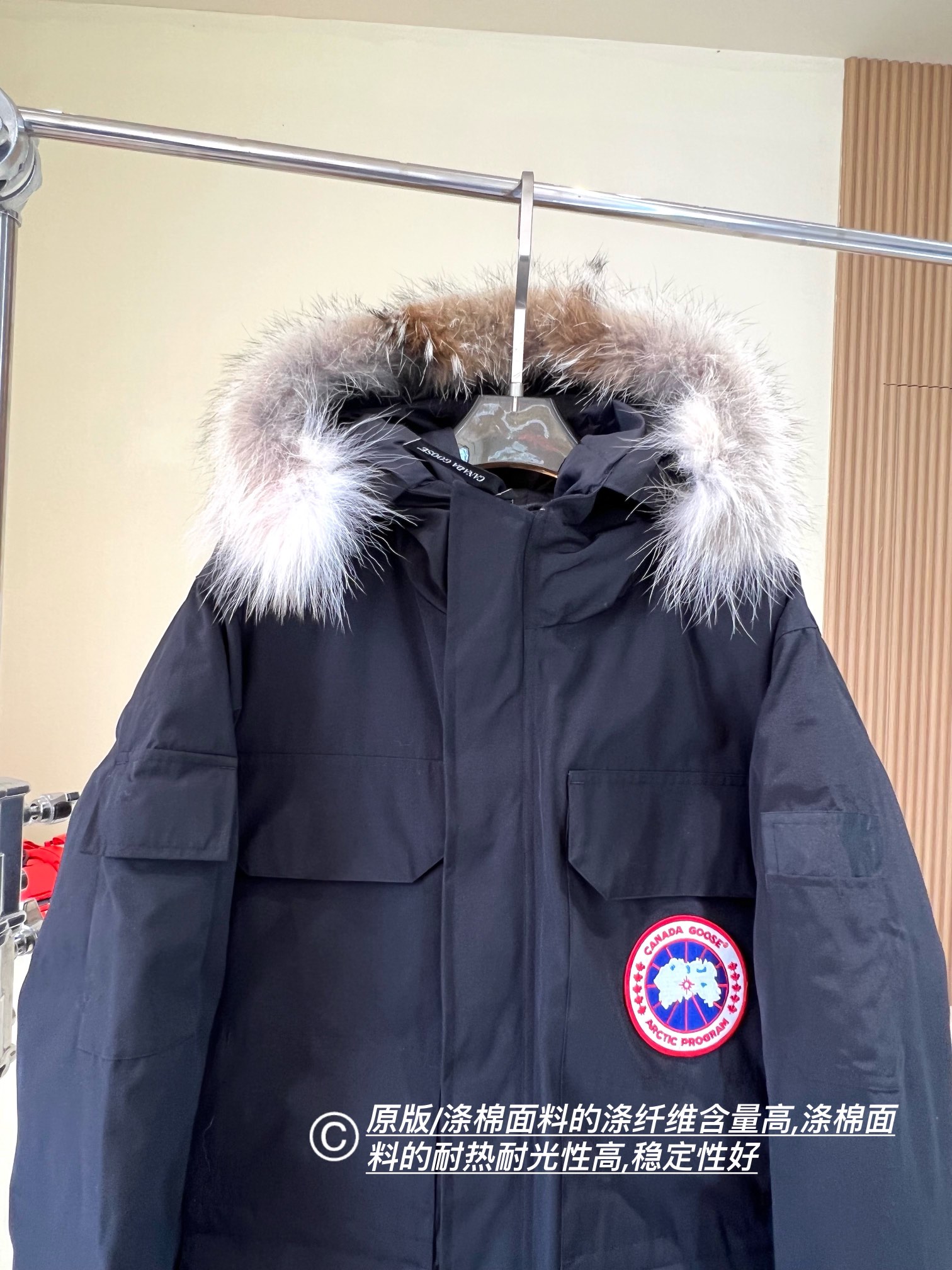 这款衣服是AAAAA 1:1 质量 (非常棒). 使用了和原版一模一样的材料. 商标部分也保持了和Canada Goose一样. 图片拍摄是实物衣服拍摄, 您所收到的实物保证和我们图片一模一样.