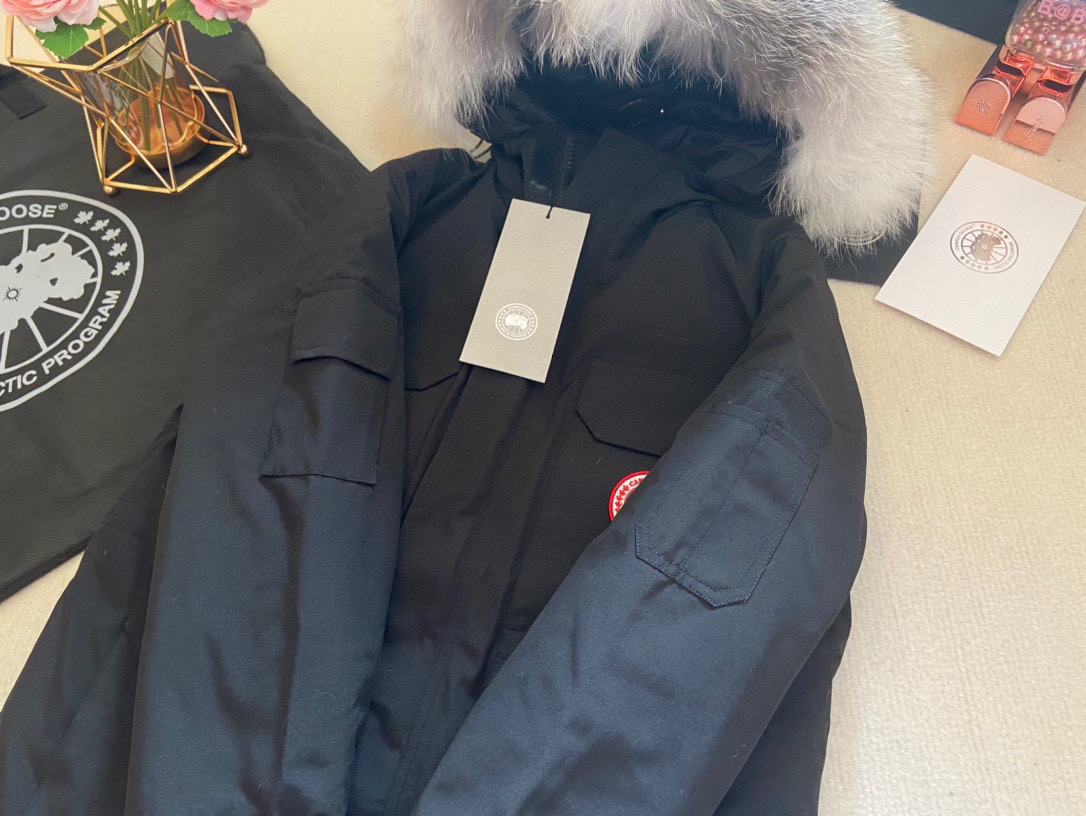 这款衣服是AAAAA 1:1 质量 (非常棒). 使用了和原版一模一样的材料. 商标部分也保持了和Canada Goose一样. 图片拍摄是实物衣服拍摄, 您所收到的实物保证和我们图片一模一样.
