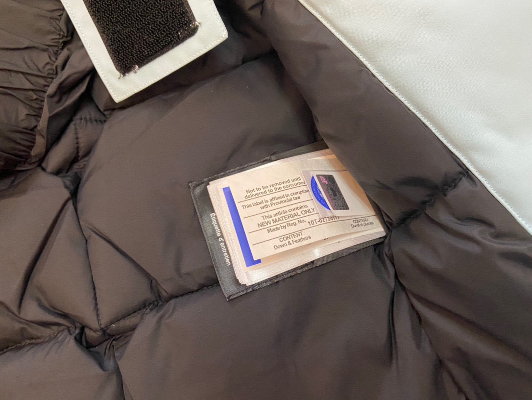 这款衣服是AAAAA 1:1 质量 (非常棒). 使用了和原版一模一样的材料. 商标部分也保持了和Canada Goose一样. 图片拍摄是实物衣服拍摄, 您所收到的实物保证和我们图片一模一样.