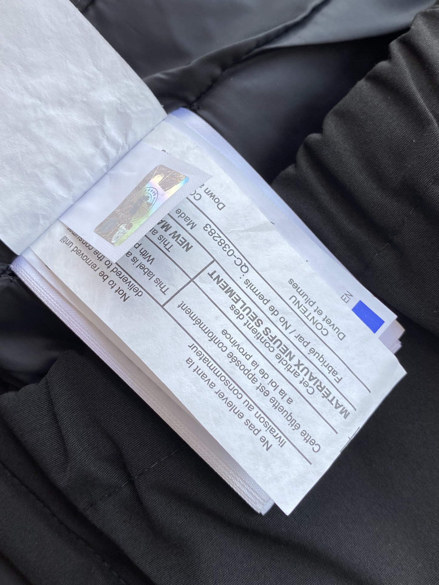 这款衣服是AAAAA 1:1 质量 (非常棒). 使用了和原版一模一样的材料. 商标部分也保持了和Canada Goose一样. 图片拍摄是实物衣服拍摄, 您所收到的实物保证和我们图片一模一样.