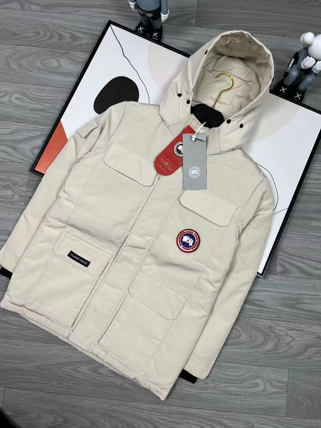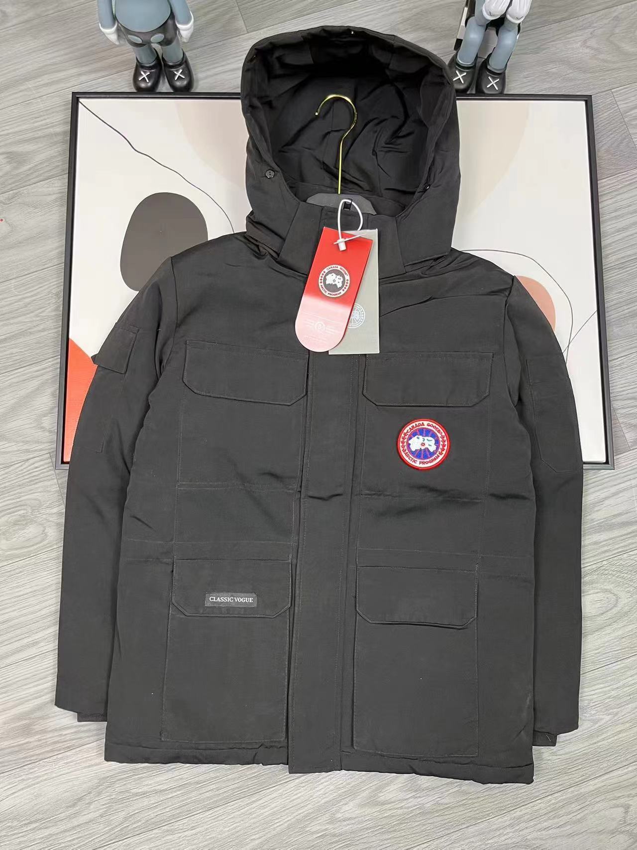 这款衣服是AAAAA 1:1 质量 (非常棒). 使用了和原版一模一样的材料. 商标部分也保持了和Canada Goose一样. 图片拍摄是实物衣服拍摄, 您所收到的实物保证和我们图片一模一样.