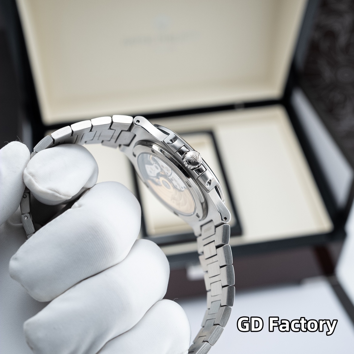这款手表是AAAAA 1:1 质量 (非常棒). 使用了和原版一模一样的材料. 商标部分也保持了和百达翡丽/Patek Philippe一样. 图片拍摄是实物手表拍摄, 您所收到的实物保证和我们图片一模一样.