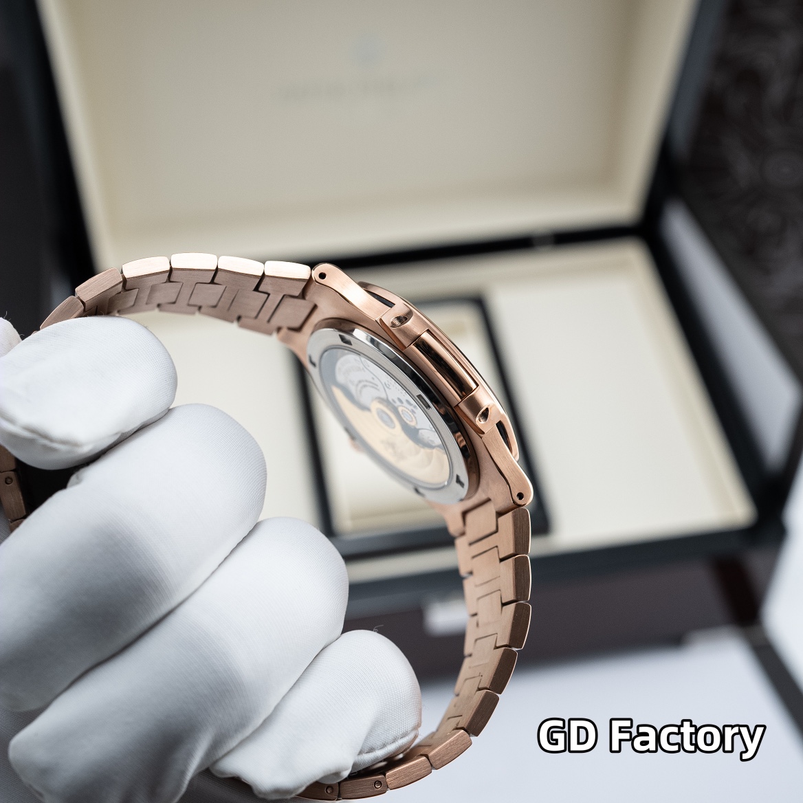 这款手表是AAAAA 1:1 质量 (非常棒). 使用了和原版一模一样的材料. 商标部分也保持了和百达翡丽/Patek Philippe一样. 图片拍摄是实物手表拍摄, 您所收到的实物保证和我们图片一模一样.