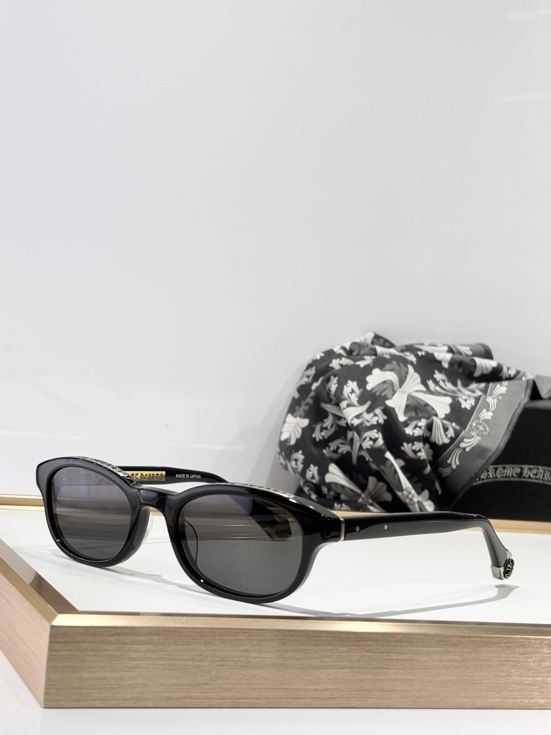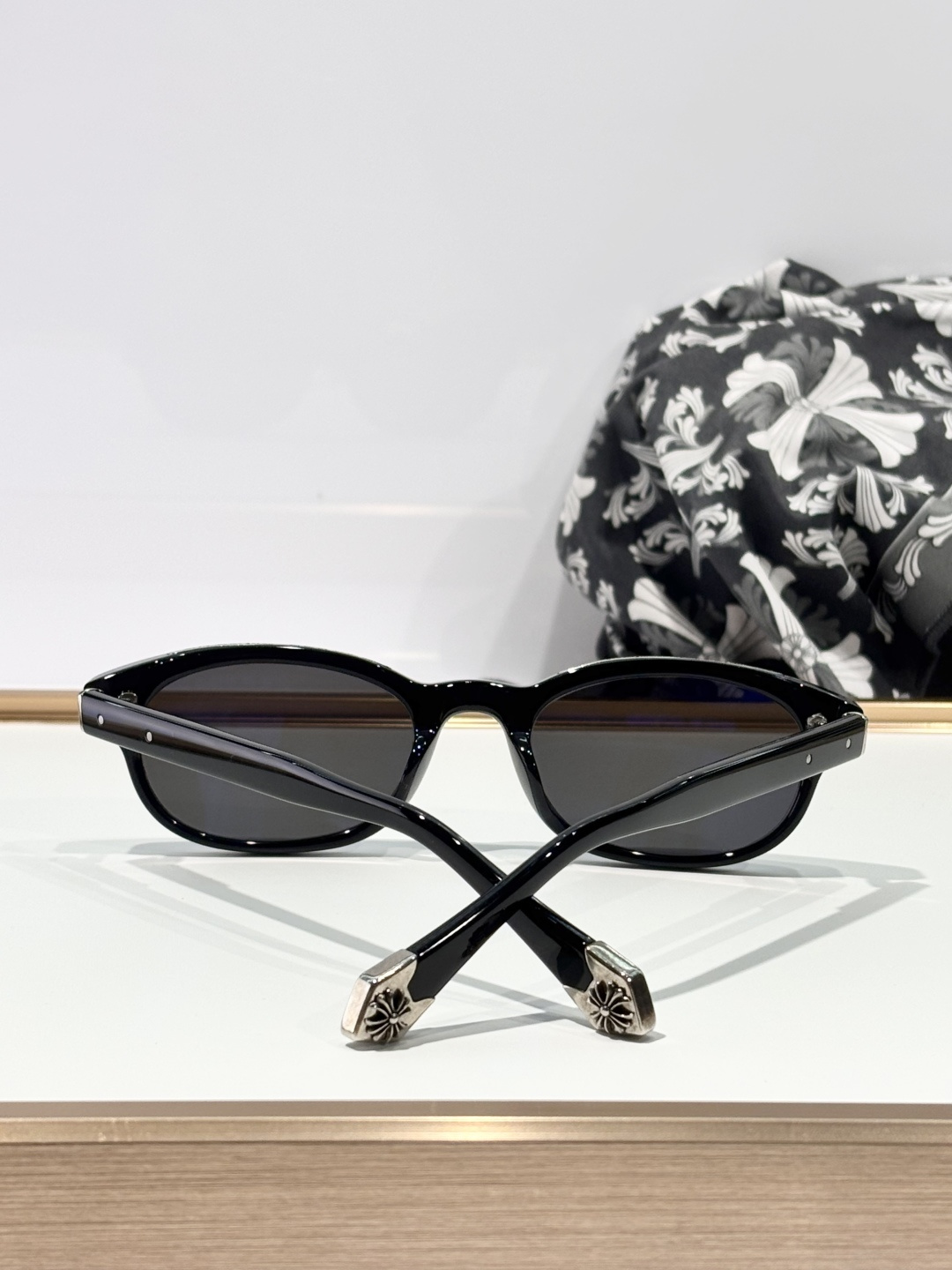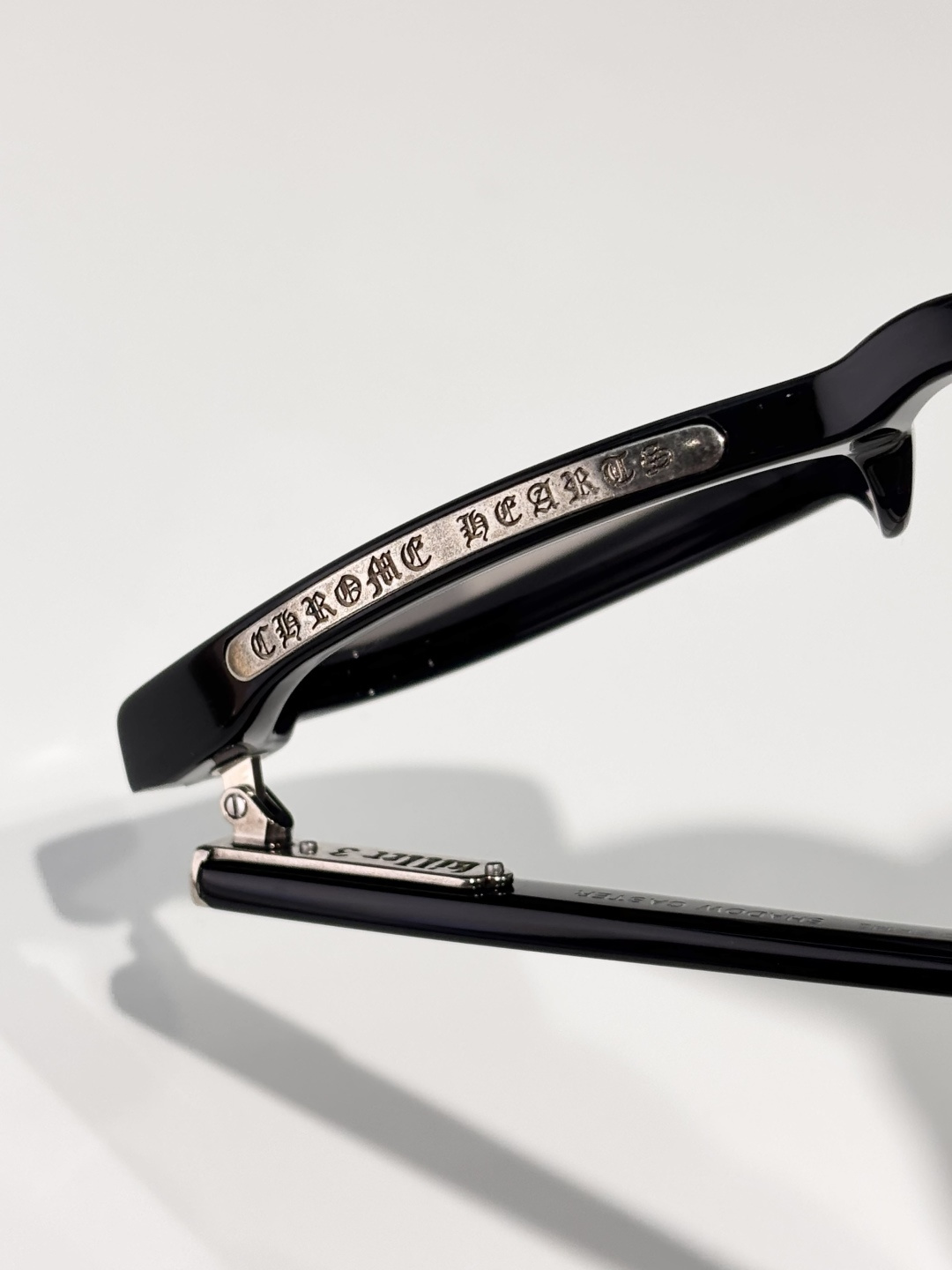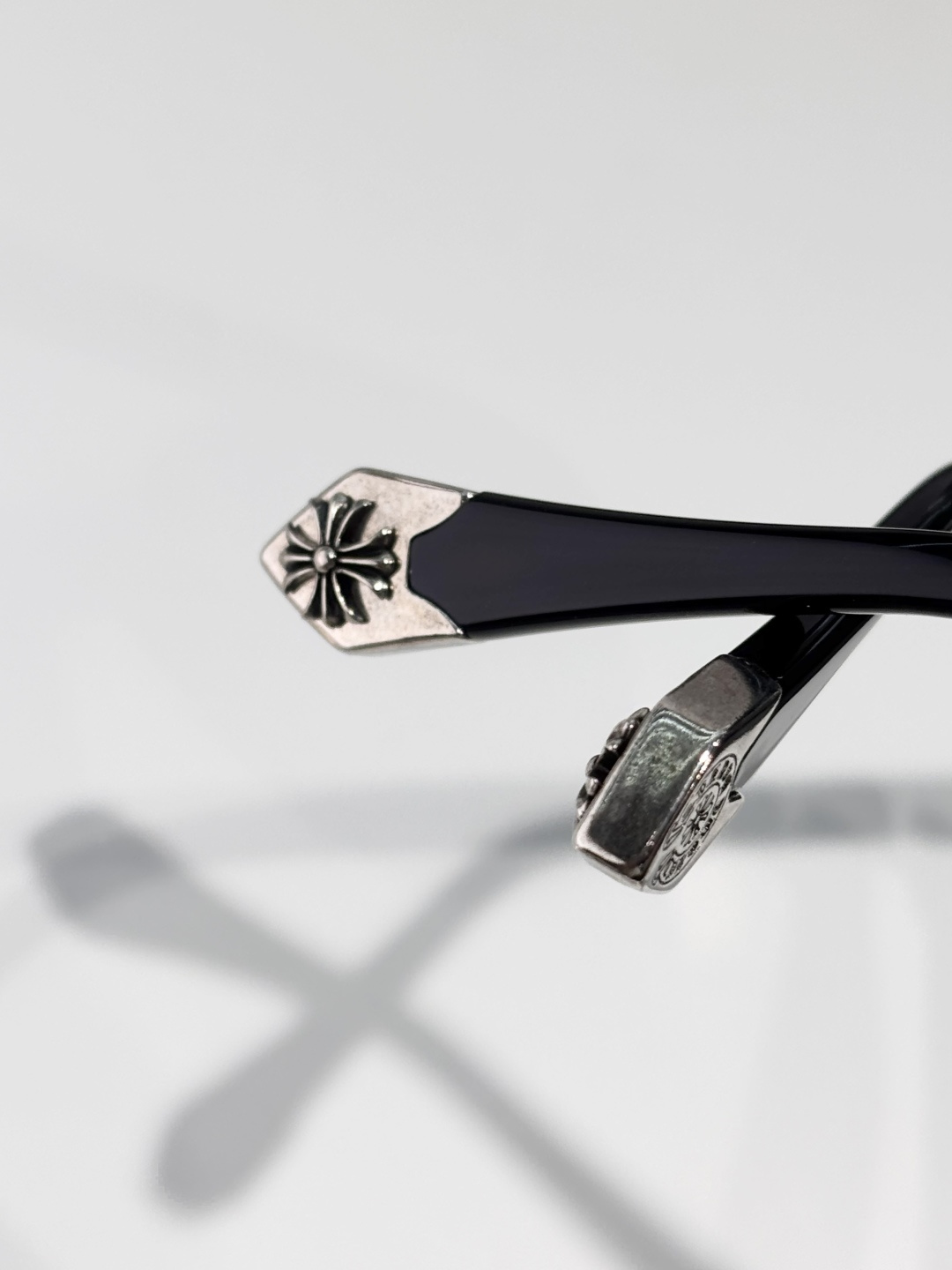 这款太阳眼镜是AAAAA 1:1 质量 (非常棒). 使用了和原版一模一样的材料. 商标部分也保持了和克罗心/Chrome Hearts一样. 图片拍摄是实物太阳眼镜拍摄, 您所收到的实物保证和我们图片一模一样.
