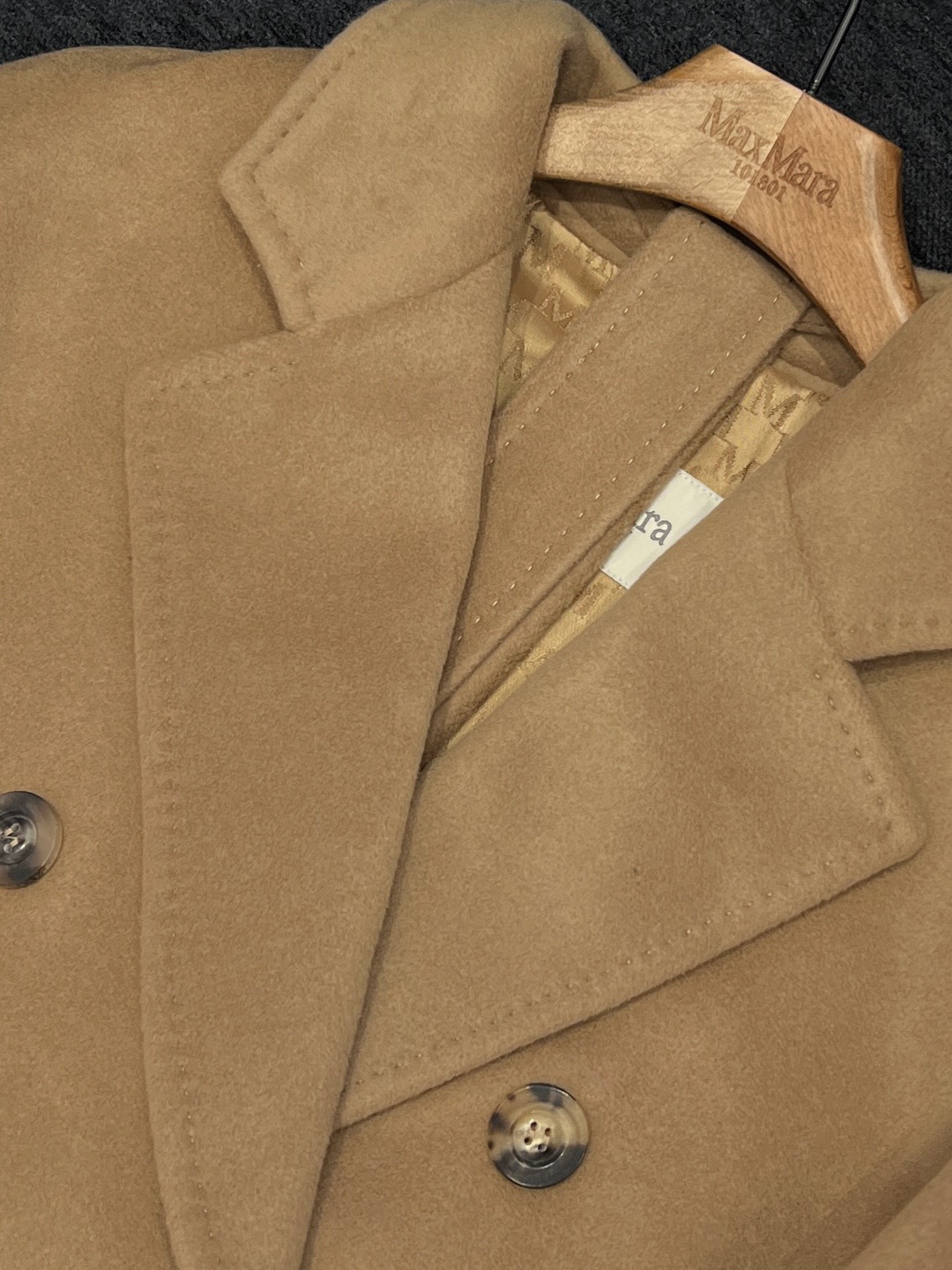 这款衣服是AAAAA 1:1 质量 (非常棒). 使用了和原版一模一样的材料. 商标部分也保持了和Max Mara一样. 图片拍摄是实物衣服拍摄, 您所收到的实物保证和我们图片一模一样.