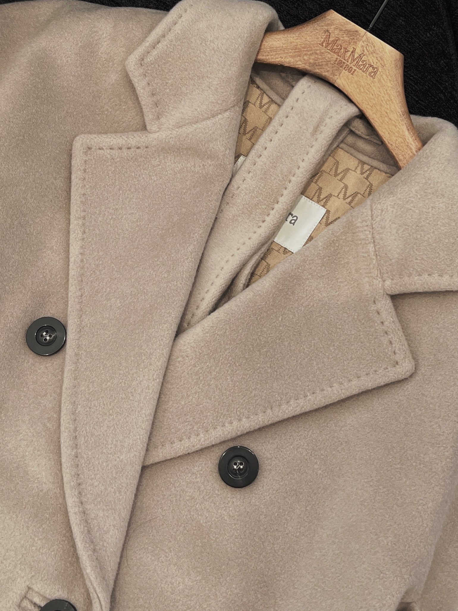 这款衣服是AAAAA 1:1 质量 (非常棒). 使用了和原版一模一样的材料. 商标部分也保持了和Max Mara一样. 图片拍摄是实物衣服拍摄, 您所收到的实物保证和我们图片一模一样.