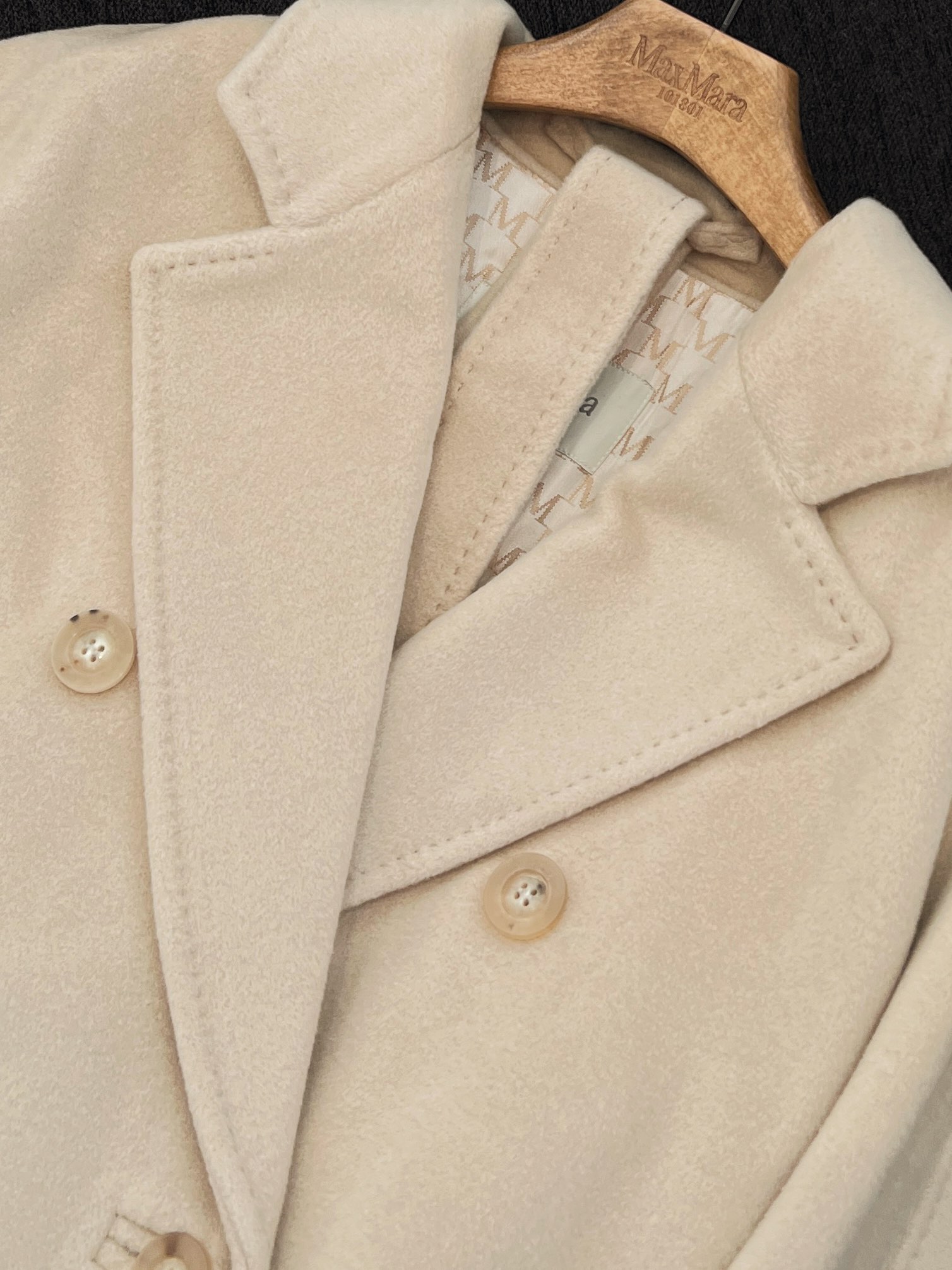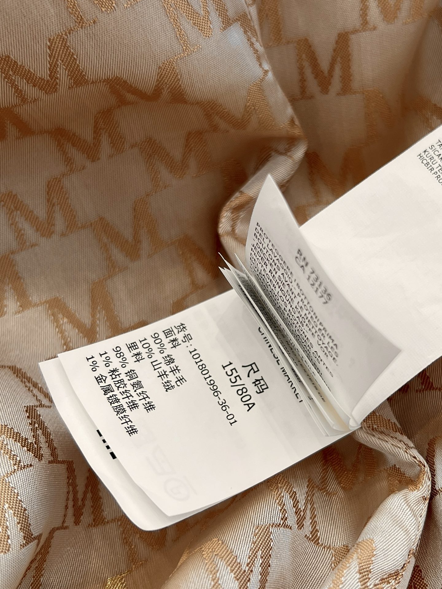 这款衣服是AAAAA 1:1 质量 (非常棒). 使用了和原版一模一样的材料. 商标部分也保持了和Max Mara一样. 图片拍摄是实物衣服拍摄, 您所收到的实物保证和我们图片一模一样.