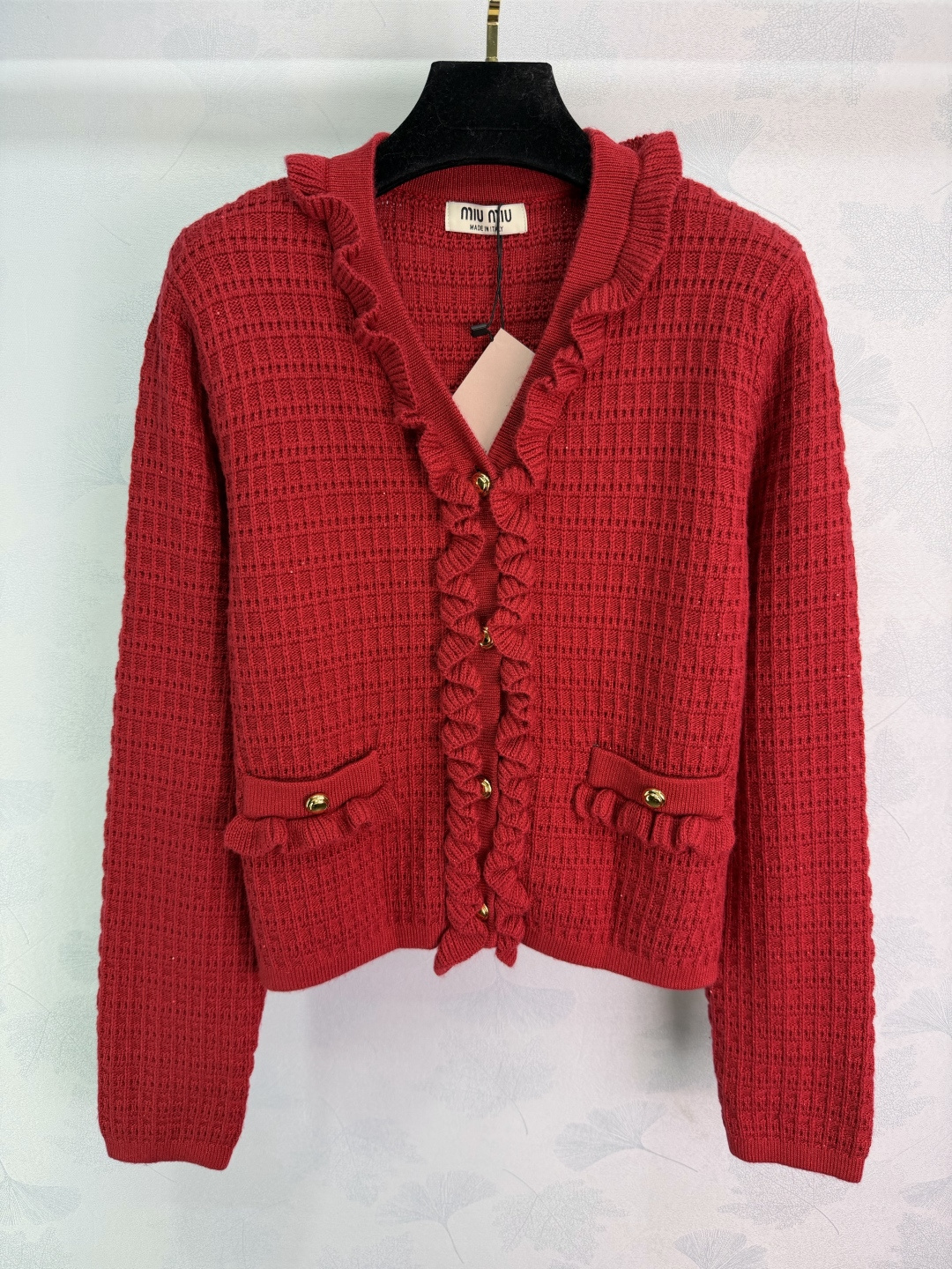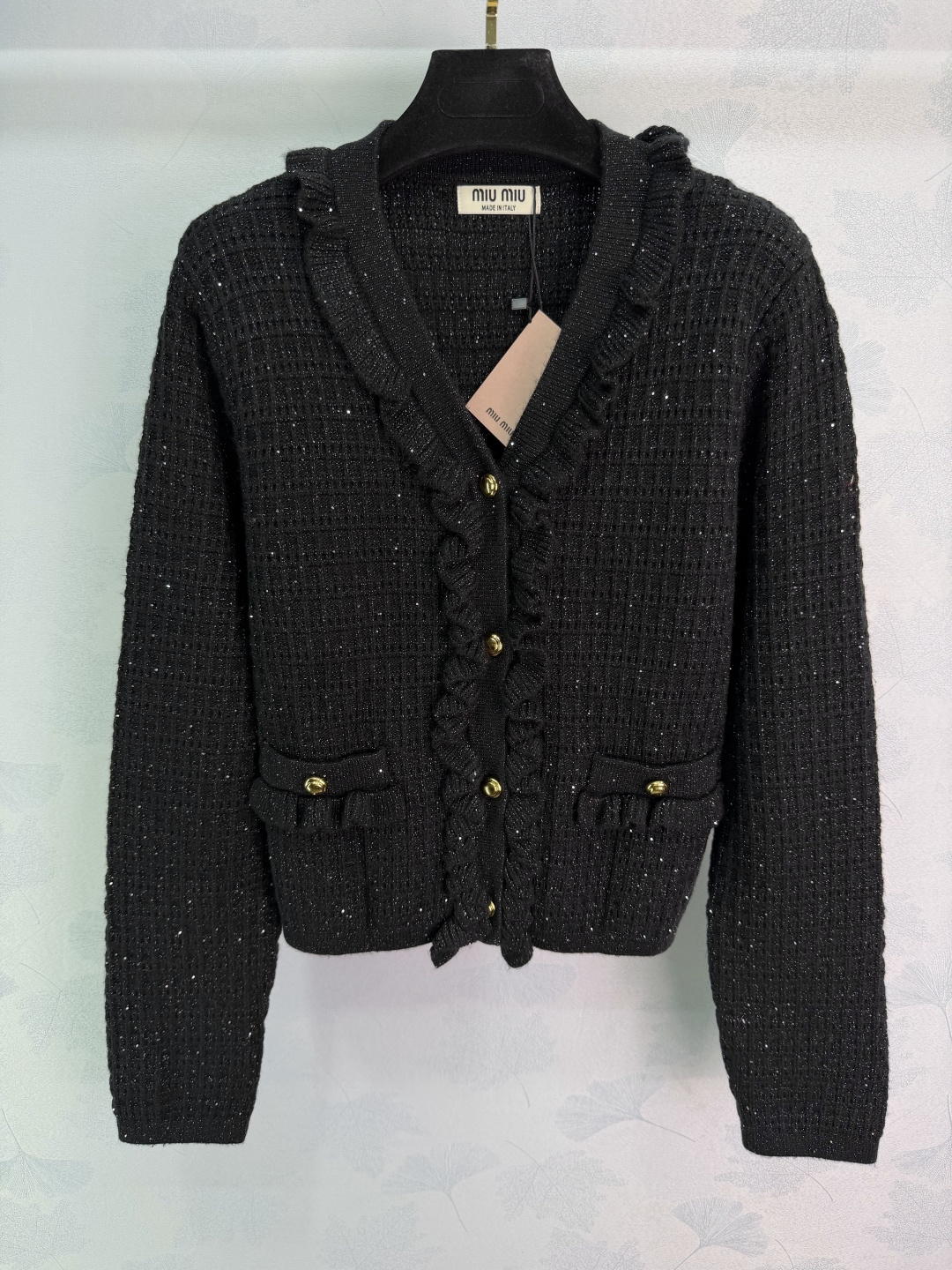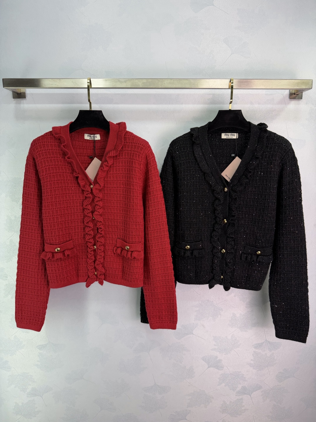这款衣服是AAAAA 1:1 质量 (非常棒). 使用了和原版一模一样的材料. 商标部分也保持了和缪缪/Miu Miu一样. 图片拍摄是实物衣服拍摄, 您所收到的实物保证和我们图片一模一样.