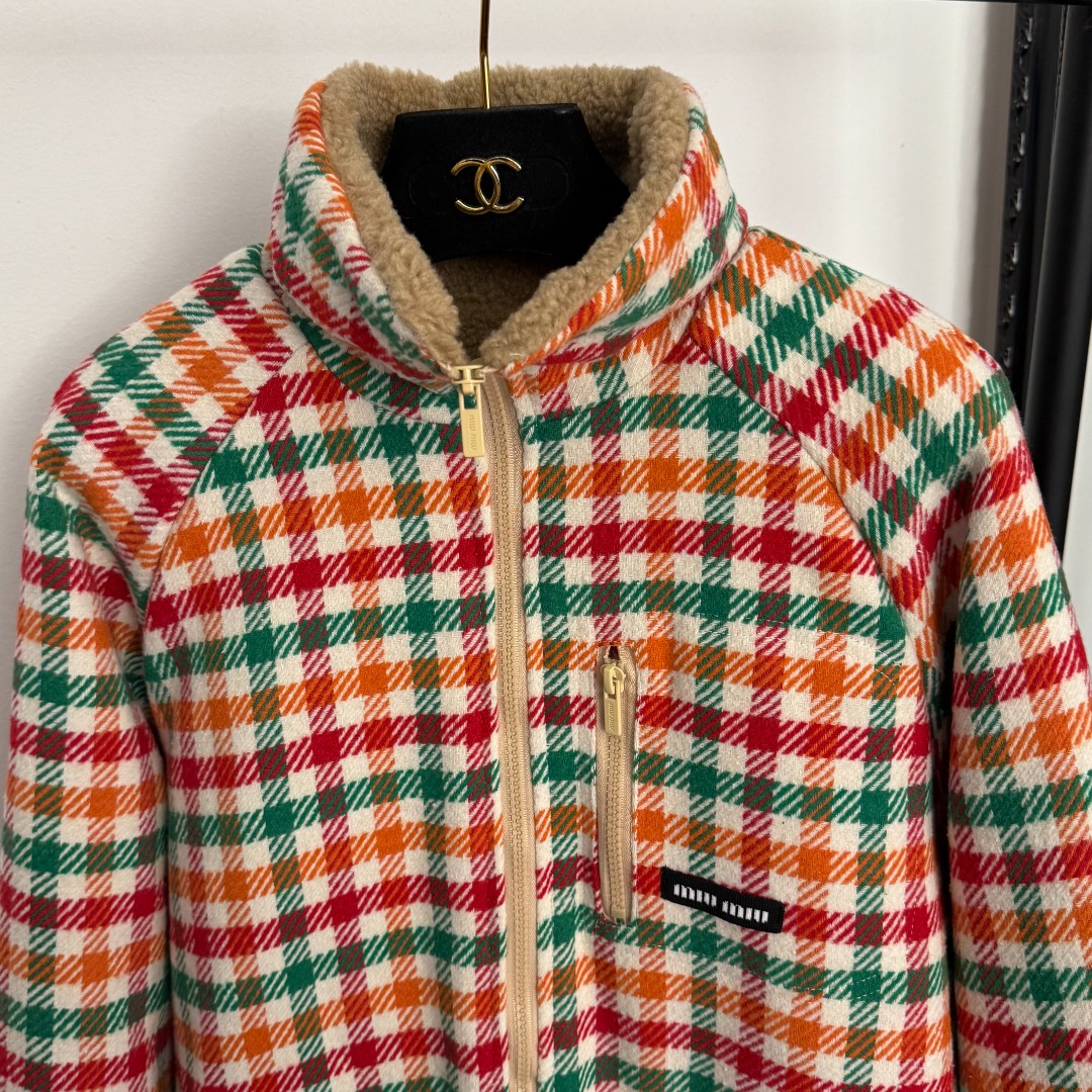 这款衣服是AAAAA 1:1 质量 (非常棒). 使用了和原版一模一样的材料. 商标部分也保持了和缪缪/Miu Miu一样. 图片拍摄是实物衣服拍摄, 您所收到的实物保证和我们图片一模一样.