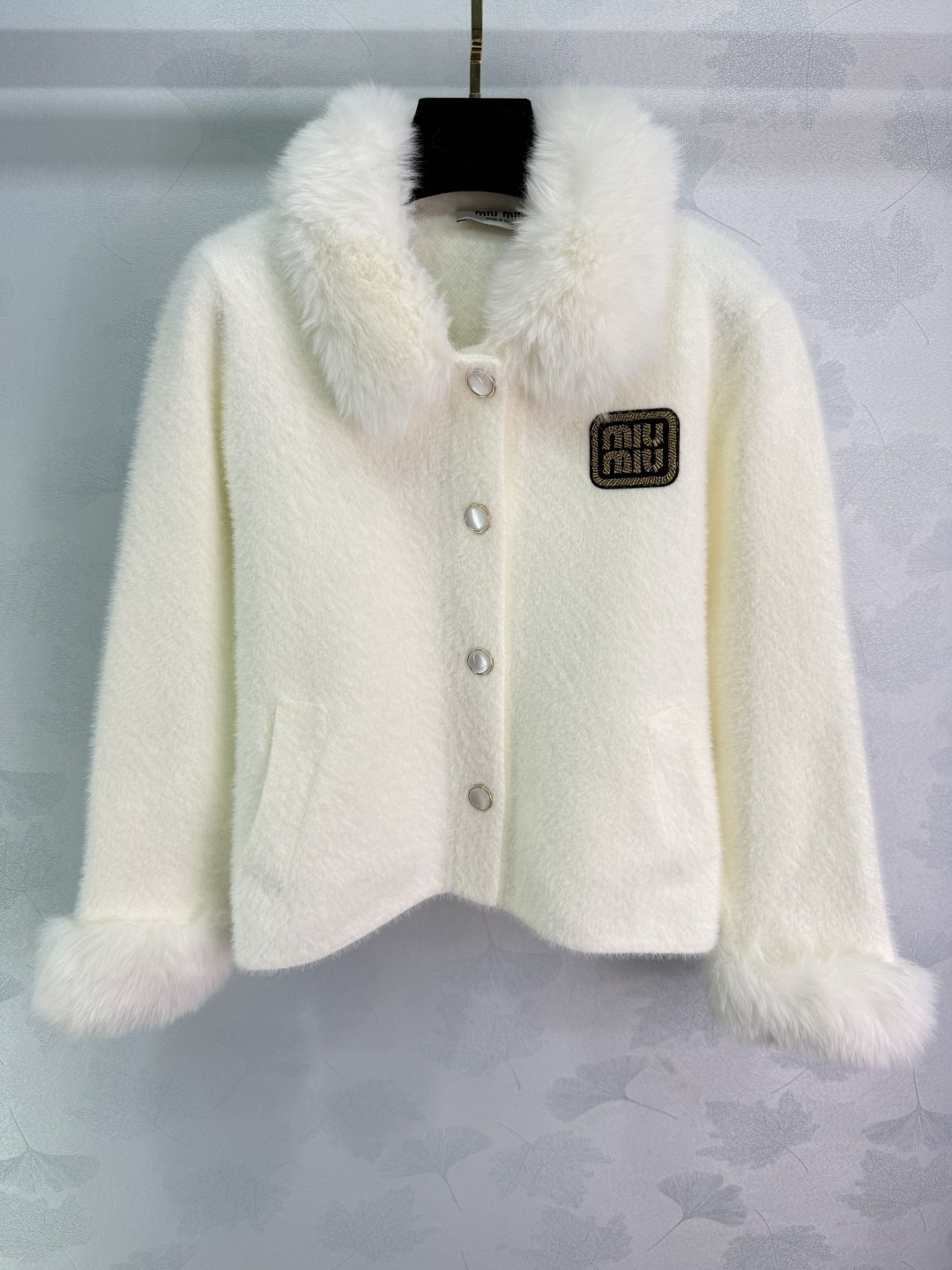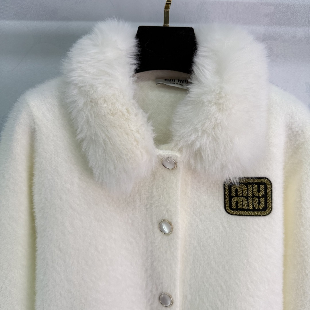 这款衣服是AAAAA 1:1 质量 (非常棒). 使用了和原版一模一样的材料. 商标部分也保持了和缪缪/Miu Miu一样. 图片拍摄是实物衣服拍摄, 您所收到的实物保证和我们图片一模一样.