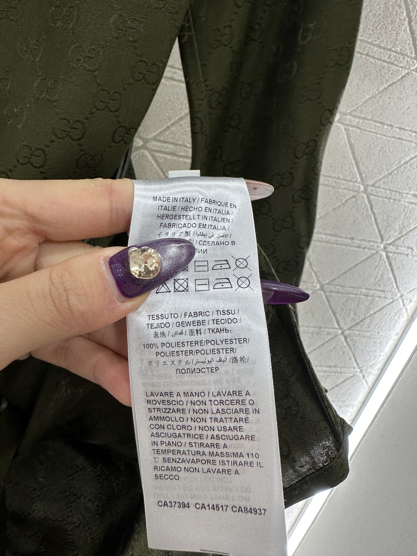 这款衣服是AAAAA 1:1 质量 (非常棒). 使用了和原版一模一样的材料. 商标部分也保持了和古奇/Gucci一样. 图片拍摄是实物衣服拍摄, 您所收到的实物保证和我们图片一模一样.