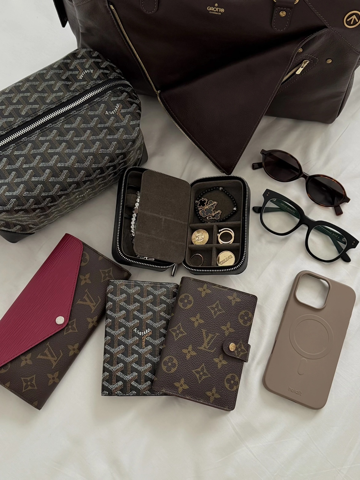 这款包包是AAAAA 1:1 质量 (非常棒). 使用了和原版一模一样的材料. 商标部分也保持了和GOYARD一样. 图片拍摄是实物包包拍摄, 您所收到的实物保证和我们图片一模一样.