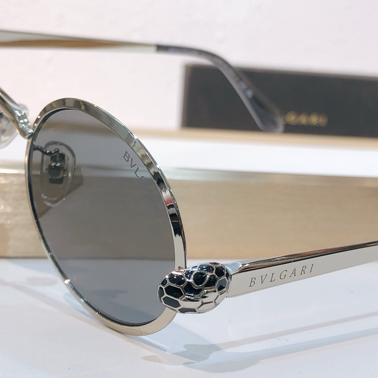 这款太阳眼镜是AAAAA 1:1 质量 (非常棒). 使用了和原版一模一样的材料. 商标部分也保持了和宝格丽/Bulgari一样. 图片拍摄是实物太阳眼镜拍摄, 您所收到的实物保证和我们图片一模一样.
