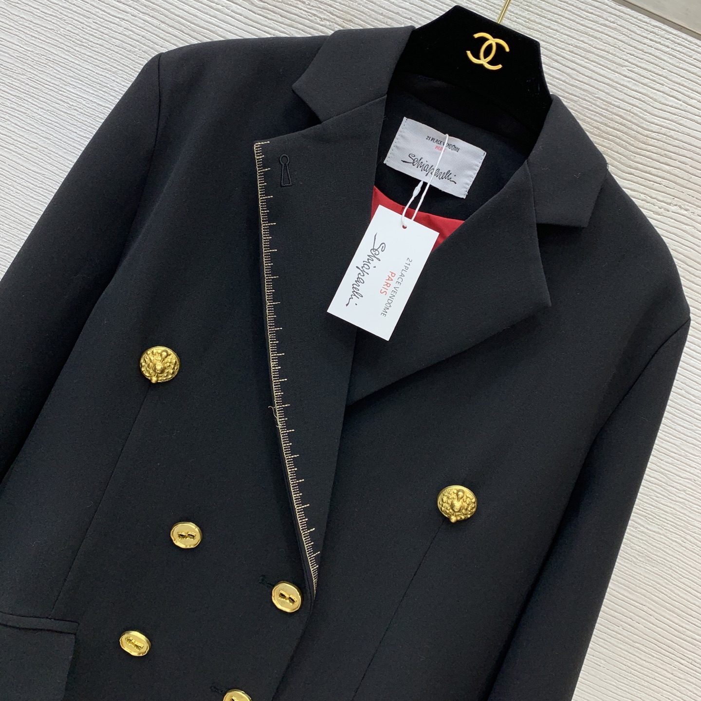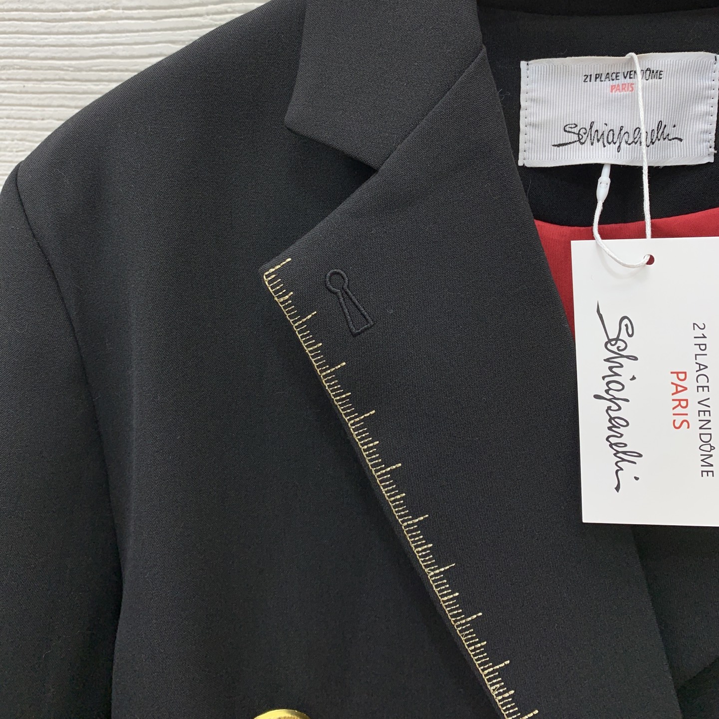 这款衣服是AAAAA 1:1 质量 (非常棒). 使用了和原版一模一样的材料. 商标部分也保持了和Schiaparelli一样. 图片拍摄是实物衣服拍摄, 您所收到的实物保证和我们图片一模一样.