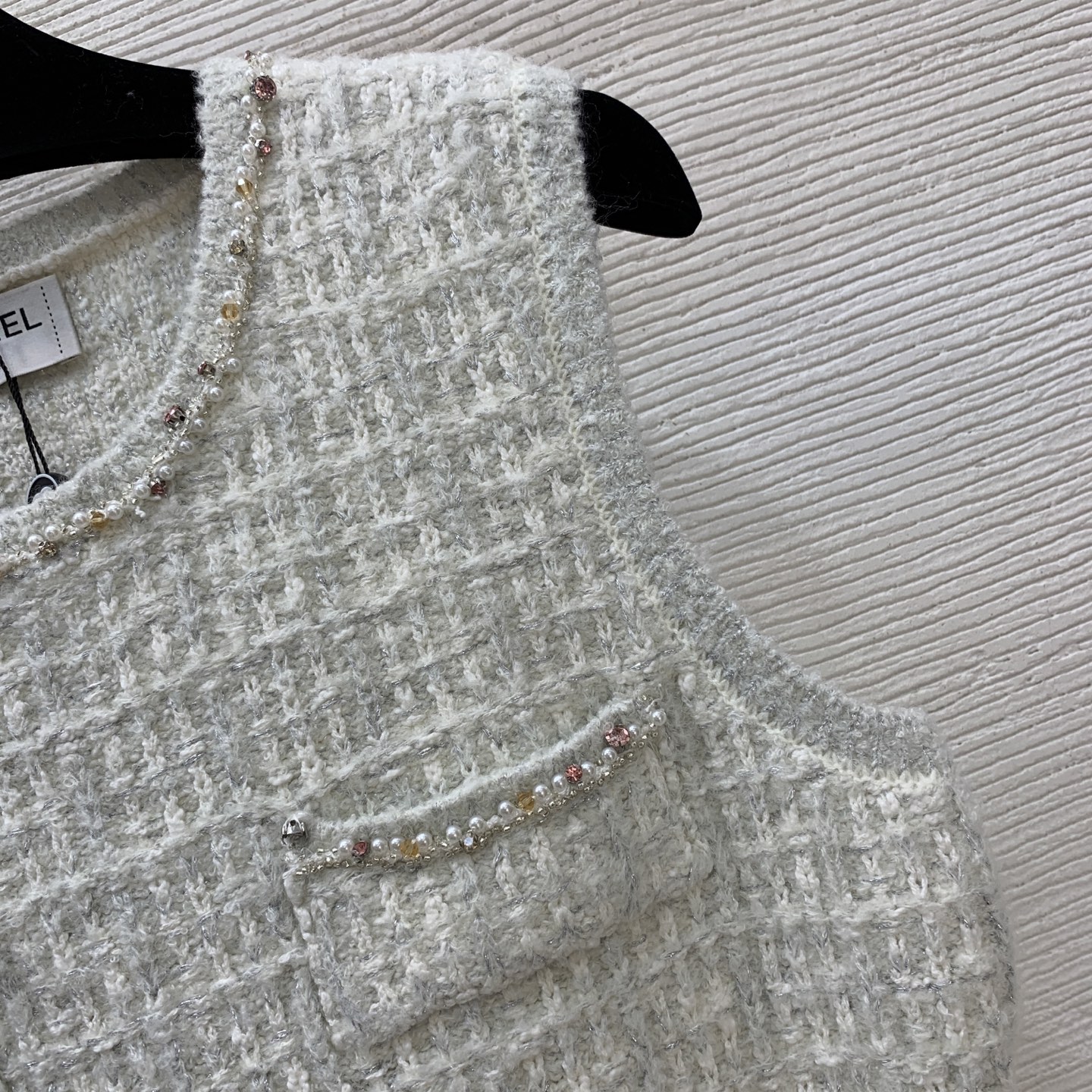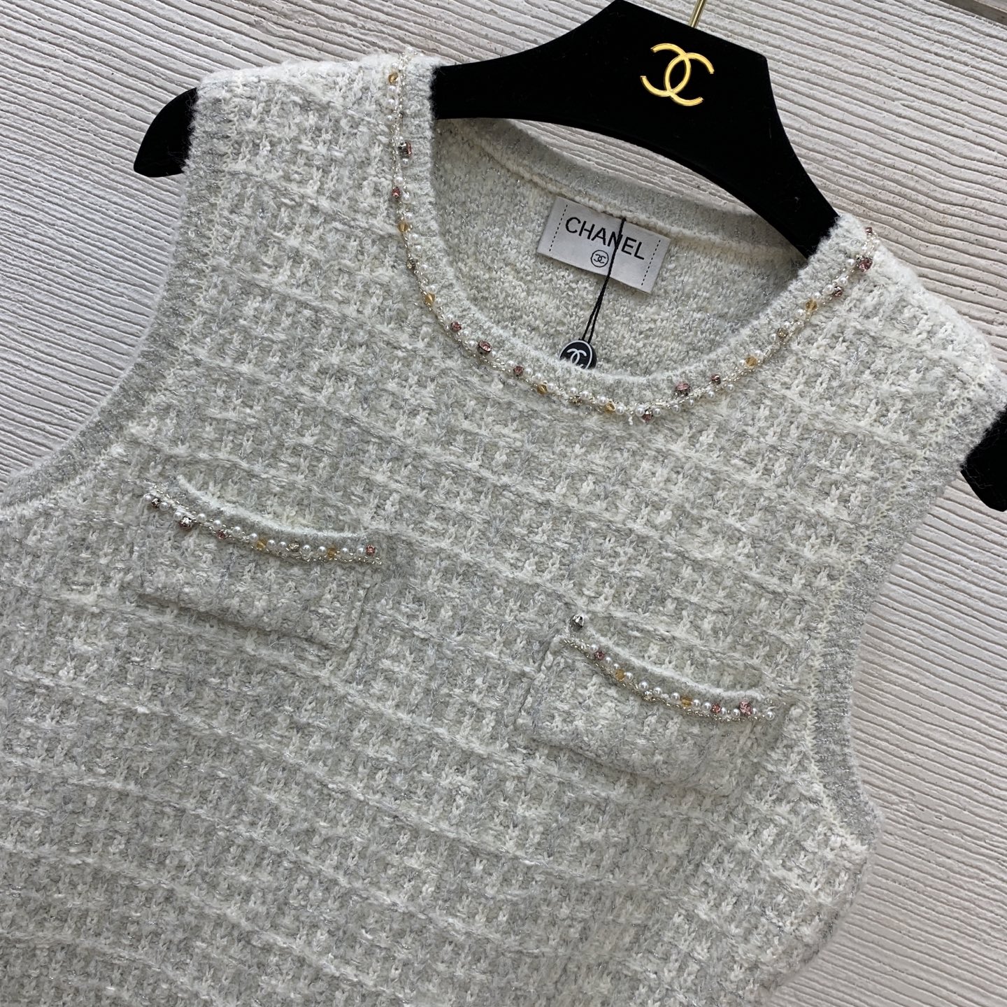 这款衣服是AAAAA 1:1 质量 (非常棒). 使用了和原版一模一样的材料. 商标部分也保持了和香奈儿/Chanel一样. 图片拍摄是实物衣服拍摄, 您所收到的实物保证和我们图片一模一样.